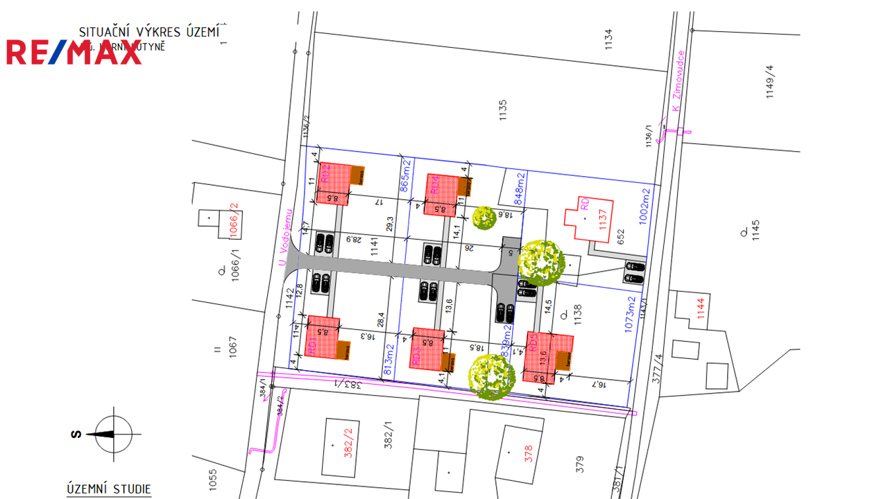 Jedná se o následující pozemky: Parc.č. 1137, s výměrou 996m² - zastavěná plocha a nádvoří, Parc.č. 1138, výměra 1351m² - zahrada, Parc.č. 1141, výměra 3448m² - orná půda, Parc.č. 1143/1, výměra 92m² – ostatní plocha. Inženýrské sétě vedou u hranice pozemku. Pozemky jsou rovinaté, umístěné ve velmi klidné lokalitě, v územním plánu obce jsou vedeny jako stavební: kategorie BI – bydlení individuální. Dle aktuálních podmínek výstavby dle informací poskytnutých stavebním úřadem bude možná výstavba až 4 dalších rodinných domů, viz přiložená územní studie a vizualizace budoucí výstavby.