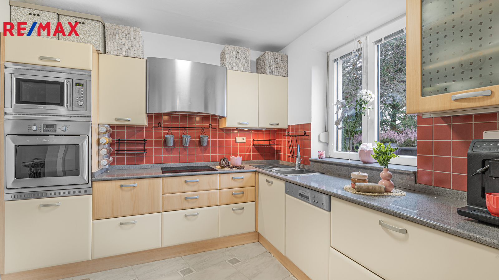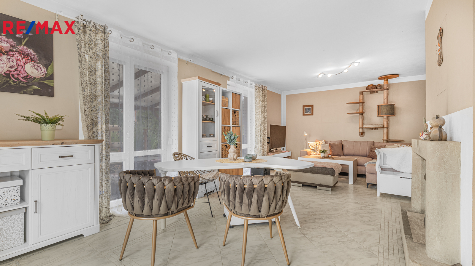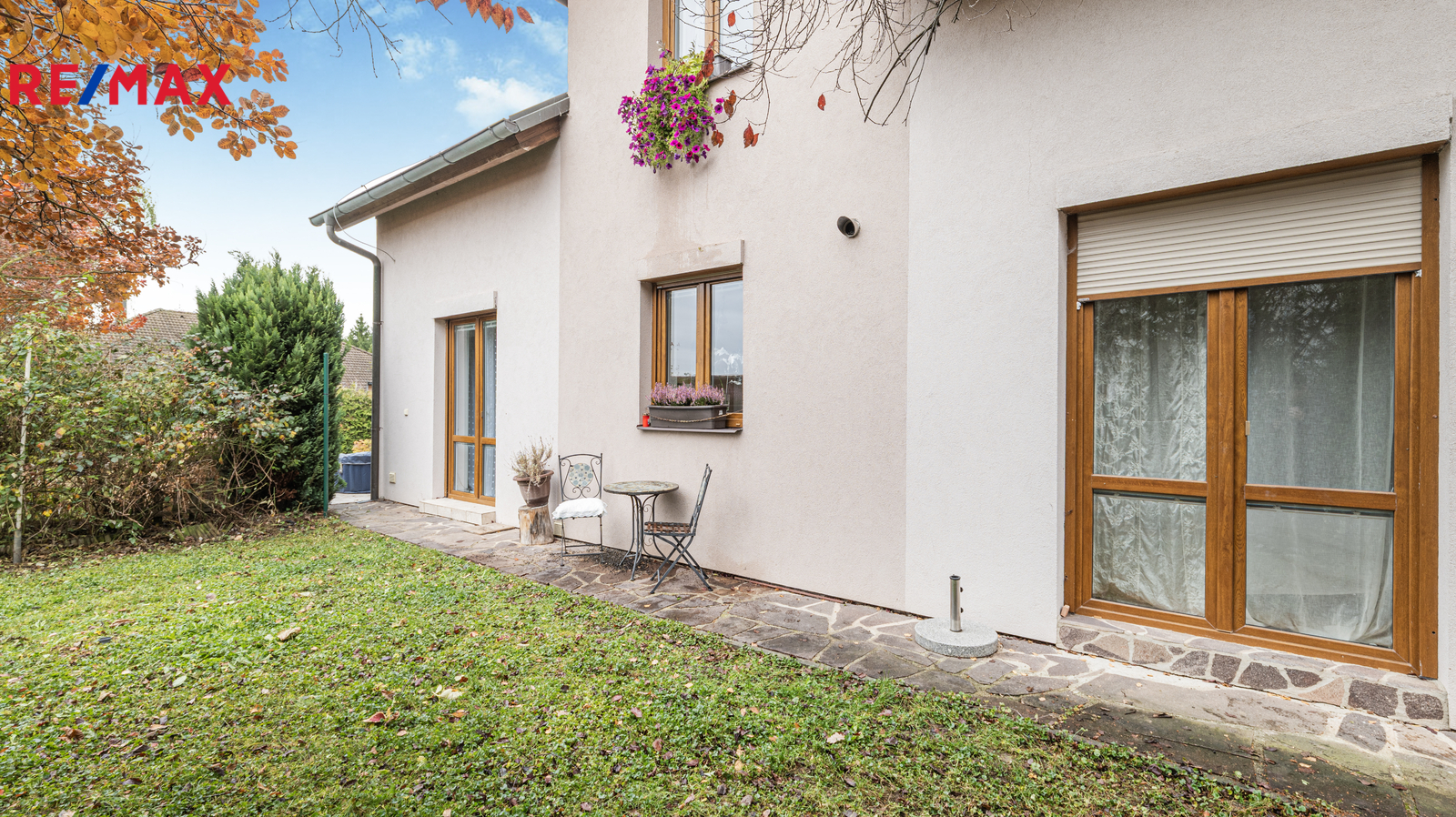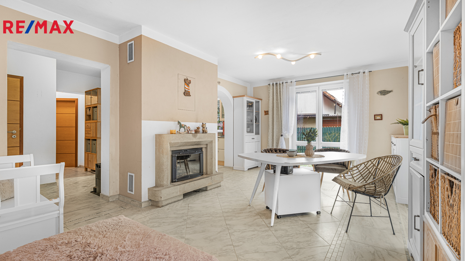 V přízemí domu se nachází velmi prostorný obývací pokoj s krbem a s přímým vstupem na terasu, kuchyň vybavená moderní kuchyňskou linkou se zabudovanými spotřebiči včetně myčky a digestoře, koupelna s vanou a sprchovým koutem a ložnice. V patře naleznete další 2 ložnice, obývací pokoj s odděleným kuchyňským koutem a koupelnu s vanou. Díky svojí dispozici je tento dům vhodný i jako vícegenerační rodinné bydlení, může se využívat jako 2 bytové jednotky o dispozicích 2+1 (přízemí) a 3+kk (horní patro).