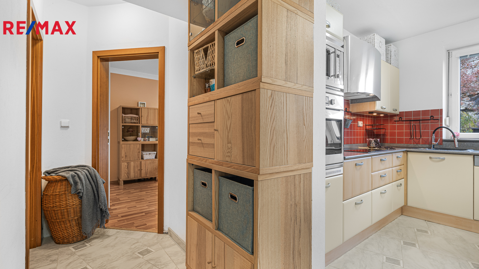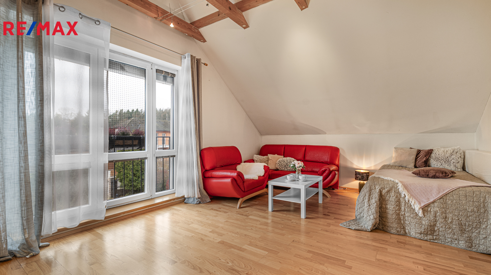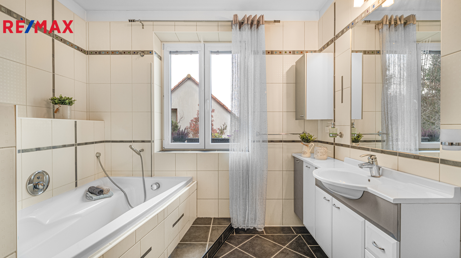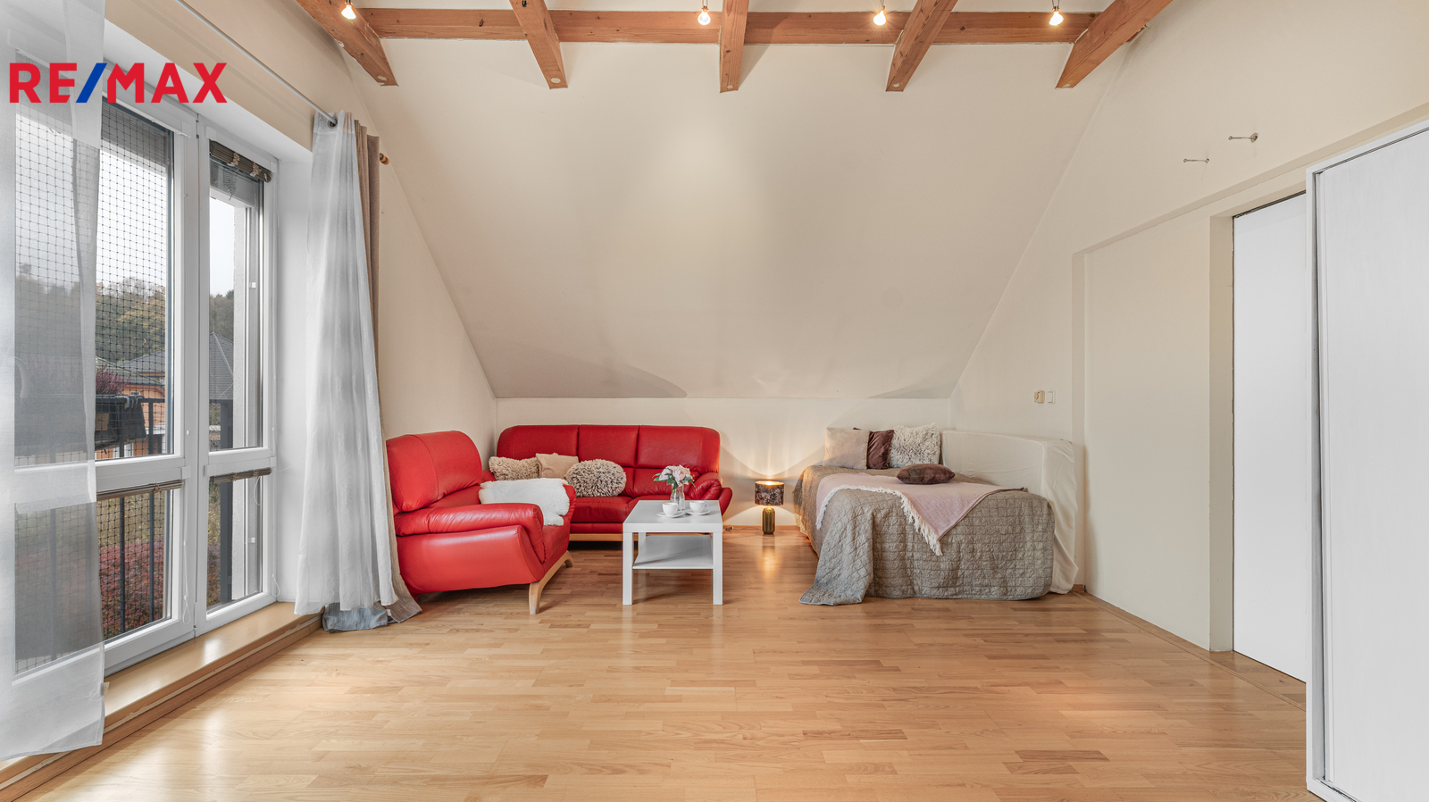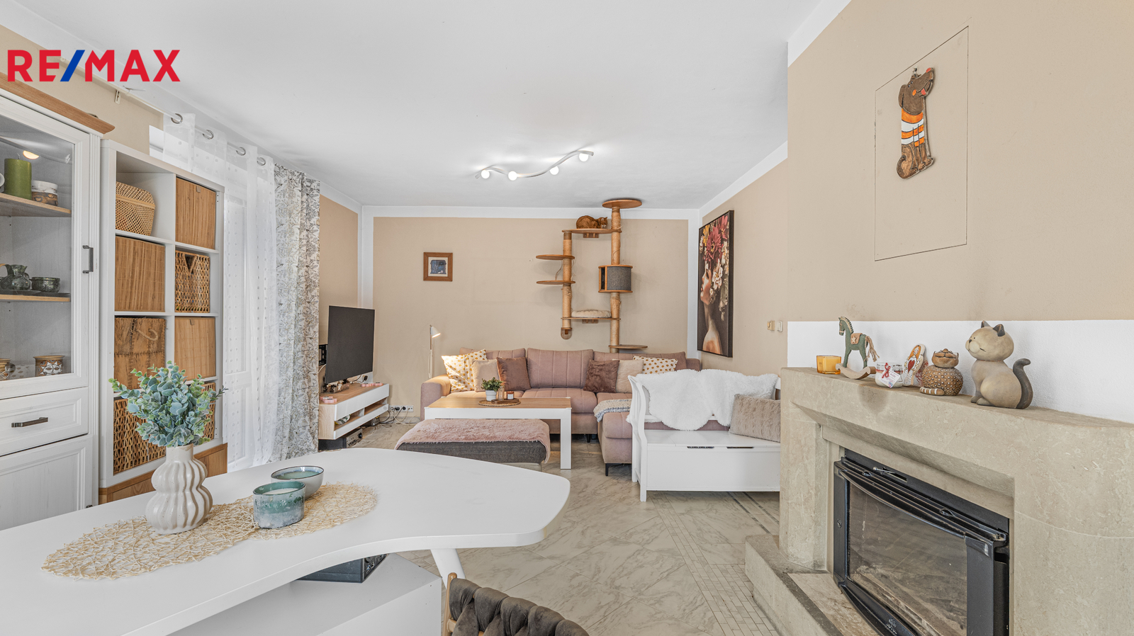 V přízemí domu se nachází velmi prostorný obývací pokoj s krbem a s přímým vstupem na terasu, kuchyň vybavená moderní kuchyňskou linkou se zabudovanými spotřebiči včetně myčky a digestoře, koupelna s vanou a sprchovým koutem a ložnice. V patře naleznete další 2 ložnice, obývací pokoj s odděleným kuchyňským koutem a koupelnu s vanou. Díky svojí dispozici je tento dům vhodný i jako vícegenerační rodinné bydlení, může se využívat jako 2 bytové jednotky o dispozicích 2+1 (přízemí) a 3+kk (horní patro).