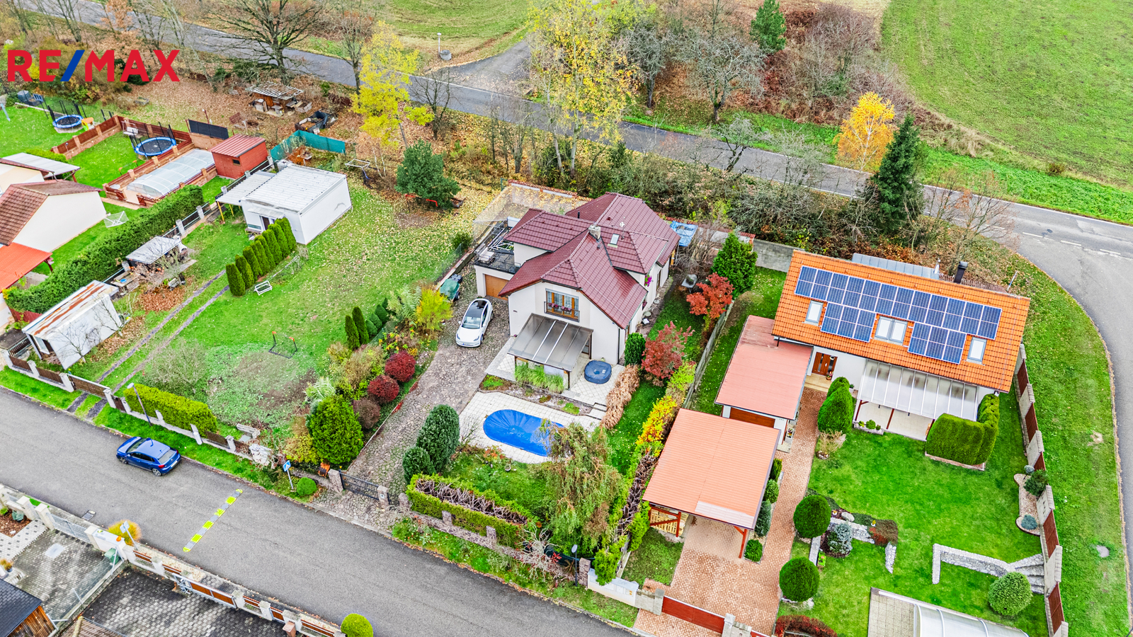 Vytápění je zajištěno plynovým kotlem. Orientace domu je na jihovýchod. Na terase najdete dostatek místa pro venkovní posezení a grilování s výhledem na bazén, ideální pro relaxaci během horkých letních dní. Bazén má rozměry 6 x 3 m s hloubkou 1,5 m. Pohodlné parkování zajišťuje garáž, na pozemek se vjíždí přes automatická vrata.