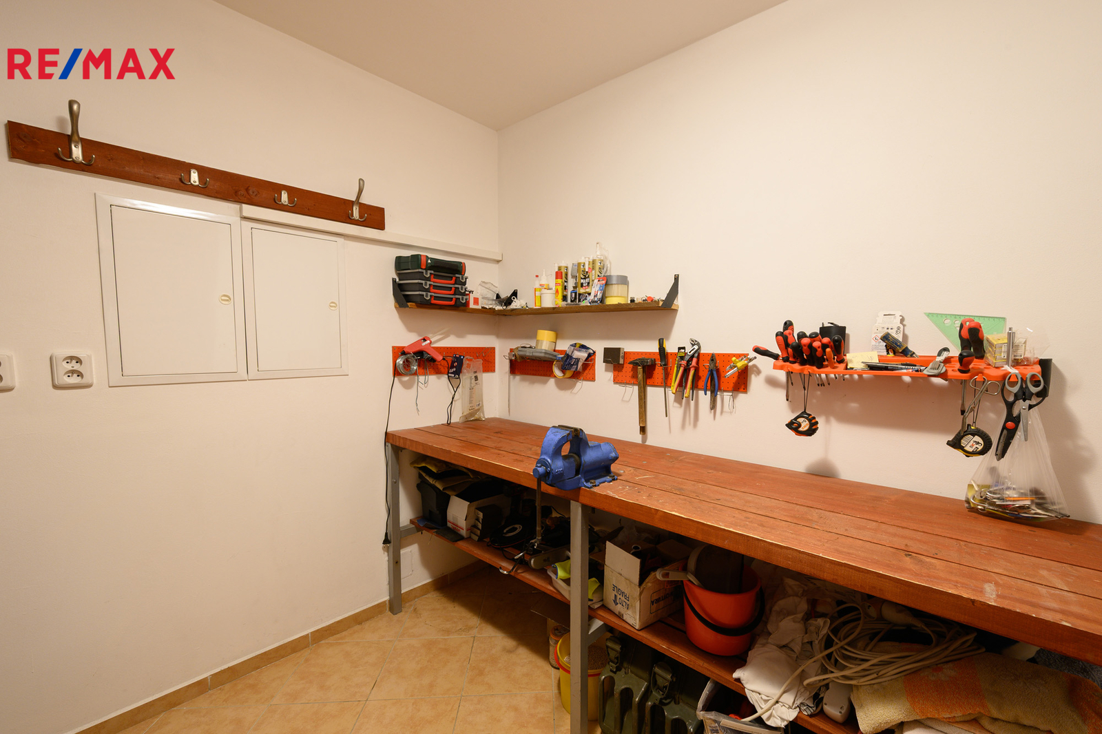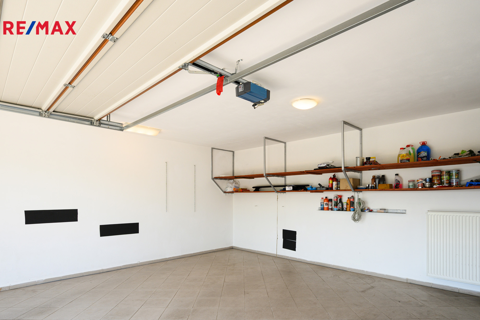 zádveří, atrium, dvougaráž, dílna, technická místnost, sklep a jeden pokoj.