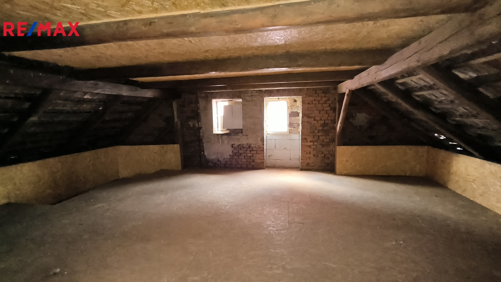 Velký potenciál nabízí půdní prostor, který je již obitý OSB deskami a připravený pro vybudování dalších dvou pokojů. Po této úpravě by bylo možné dům dispozičně rozšířit až na 5+1, což činí nabízenou cenu velmi atraktivní.