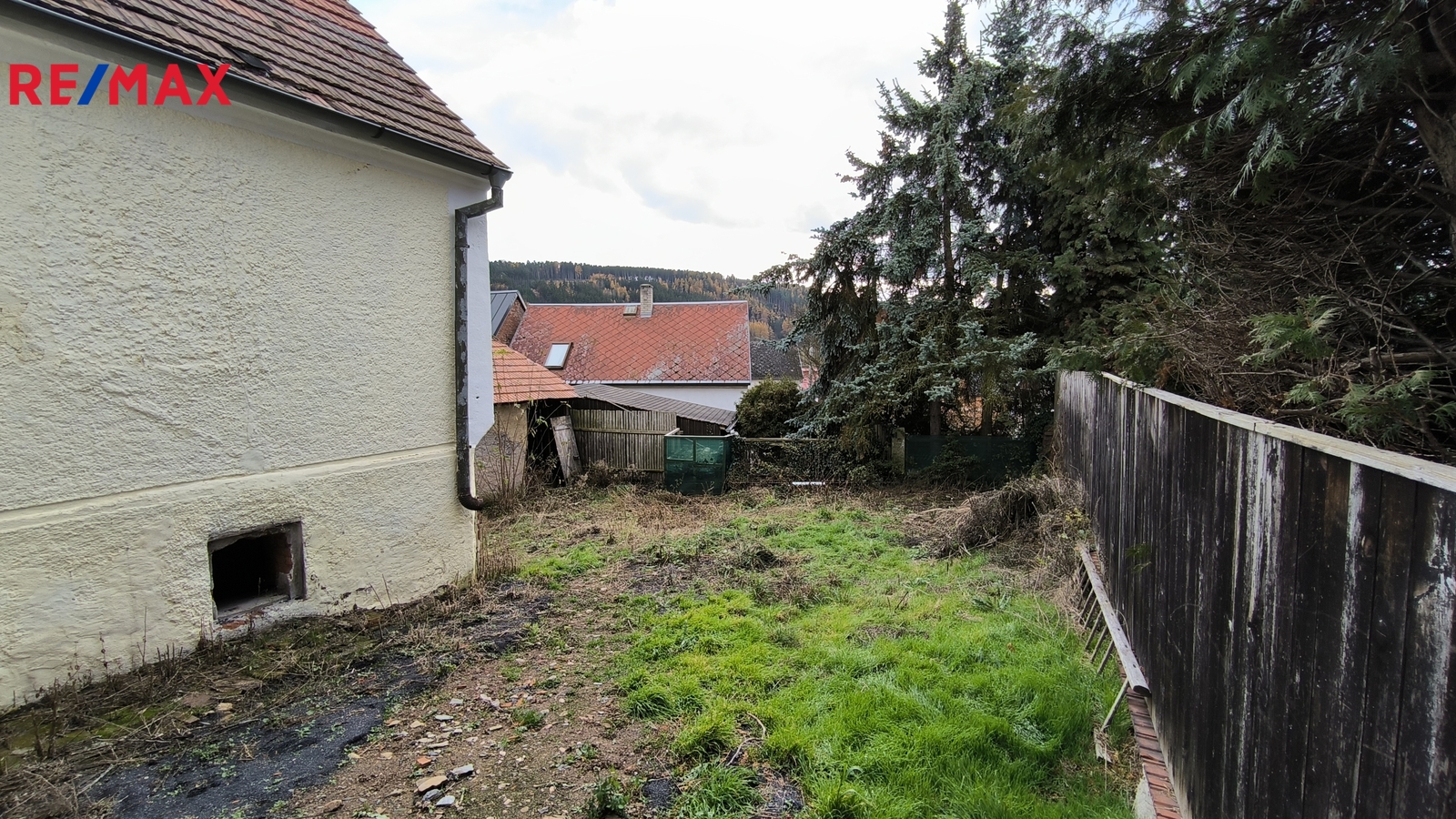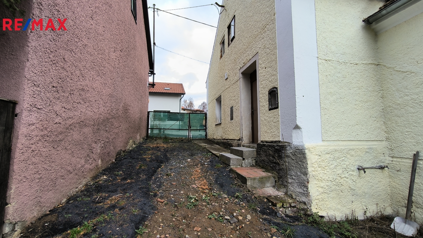 Na oploceném pozemku je dostatek prostoru pro odpočinek, zahrádku i parkování auta. Příjezd je zajištěn z veřejné komunikace přes velká uzamykatelná vrata, která poskytují majitelům potřebné soukromí a bezpečí.