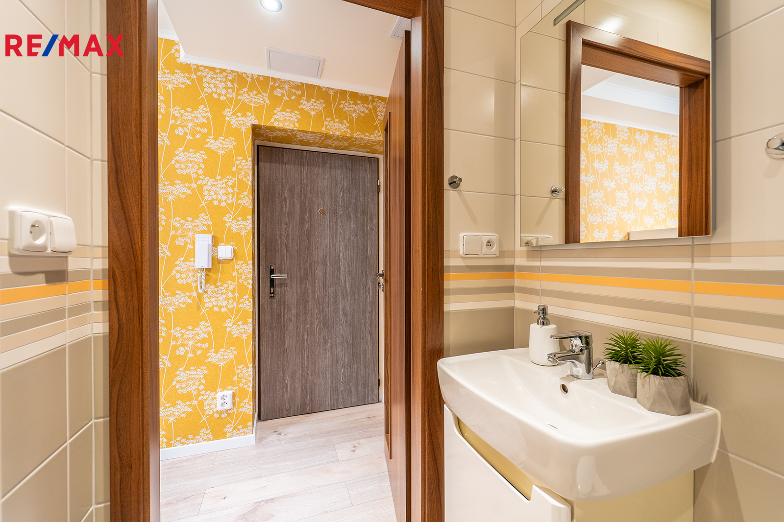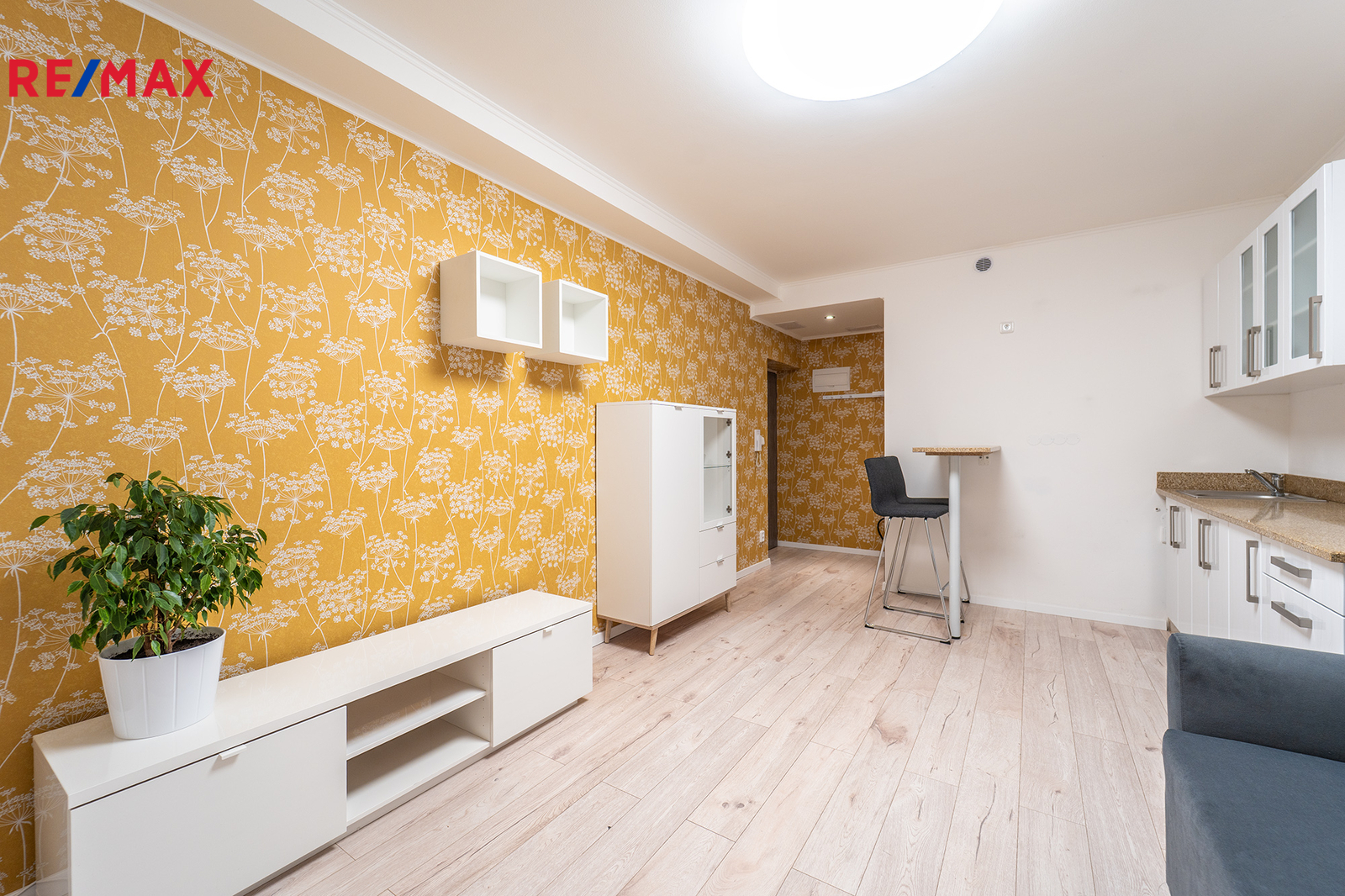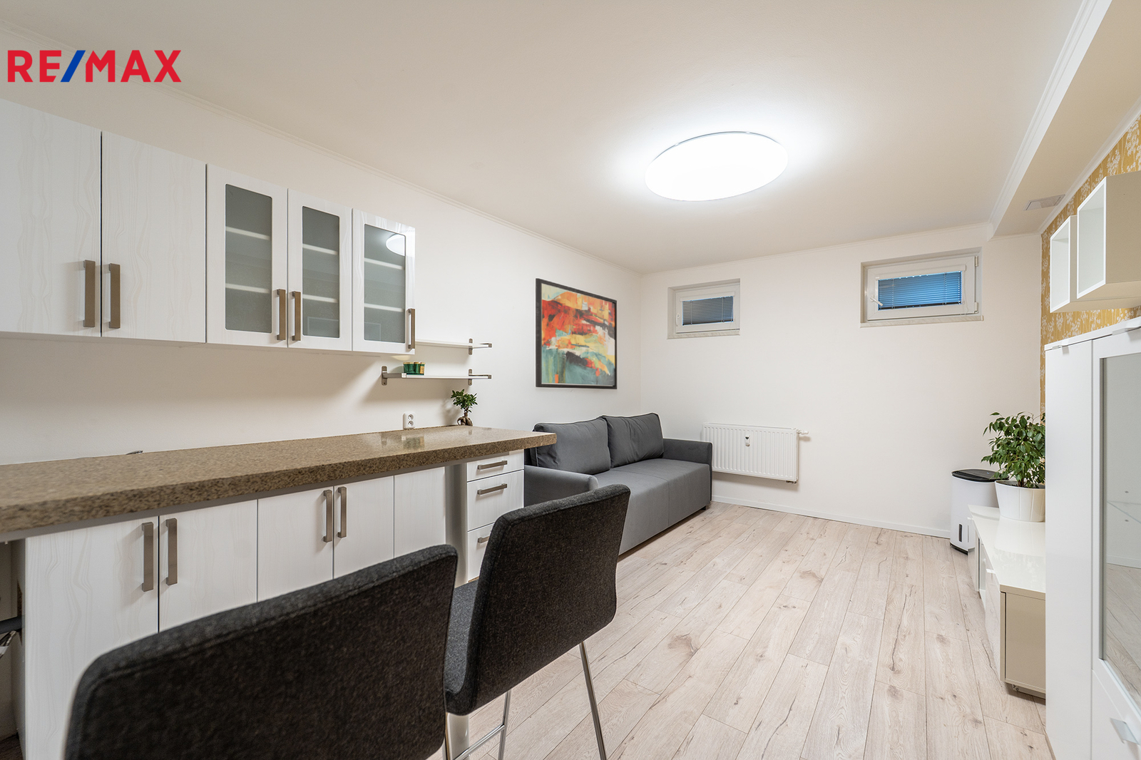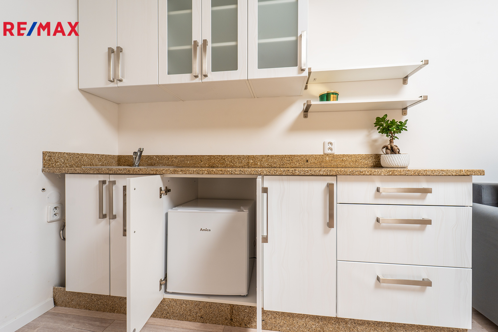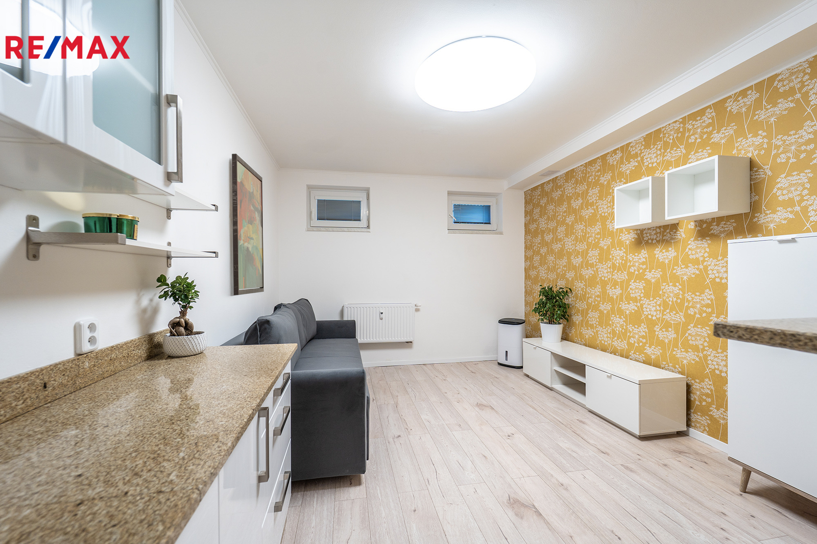 Útulný byt o dispozici 1+kk a rozloze 21 m2 (+ sklep), nacházející se v polosuterénním podlaží novostavby cihlového a zatepleného bytového domu, jenž stojí ve velmi tichém a klidném místě, na adrese U věže 2011, Praha 9 - Horní Počernice.