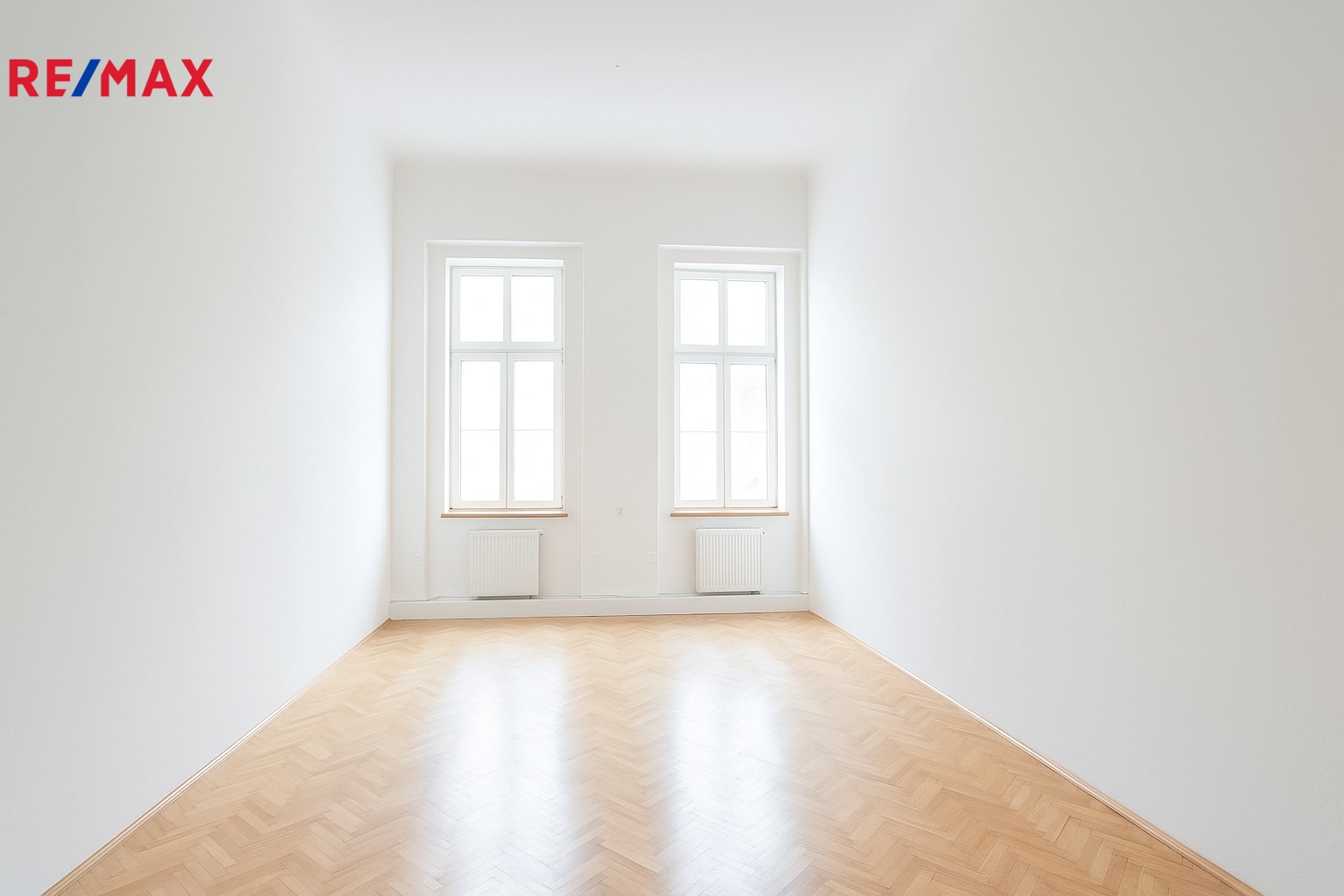 Pěkná kancelář s vysokým stropem a parketami v 1. NP objektu v areálu Sacre Coeur.
