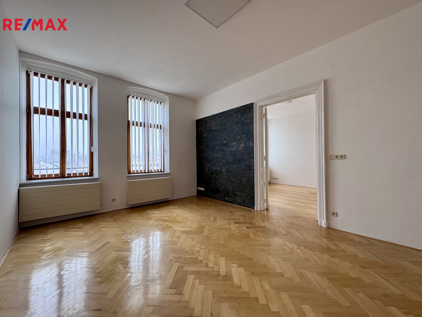 V pokojích jsou parketové podlahy, v chodbě vinyl a v kuchyni korková podlaha. Na oknech pokojů jsou vertikální látkové žaluzie. V předsíni jsou vestavěné skříně a vstup na WC.