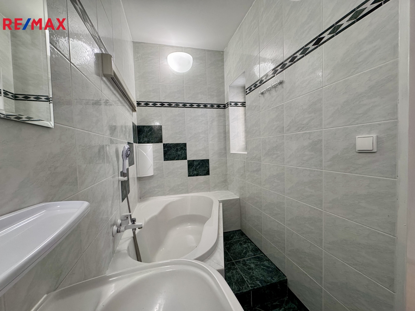 Kuchyně je vybavena elektroplynovým sporákem a nejnovějším plynovým kondenzačním kotlem. Z kuchyně je vstup do koupelny, spíže a na balkon. V koupelně menší vana, umyvadlo, okno do dvora a topný žebřík.