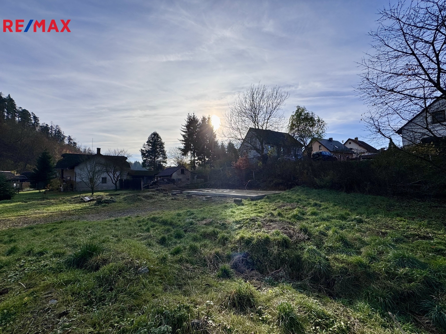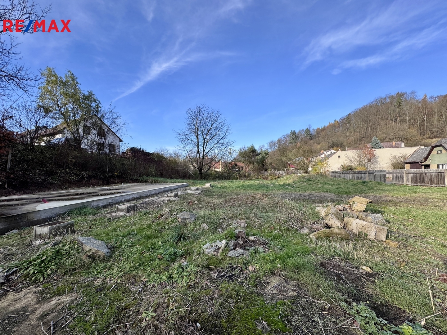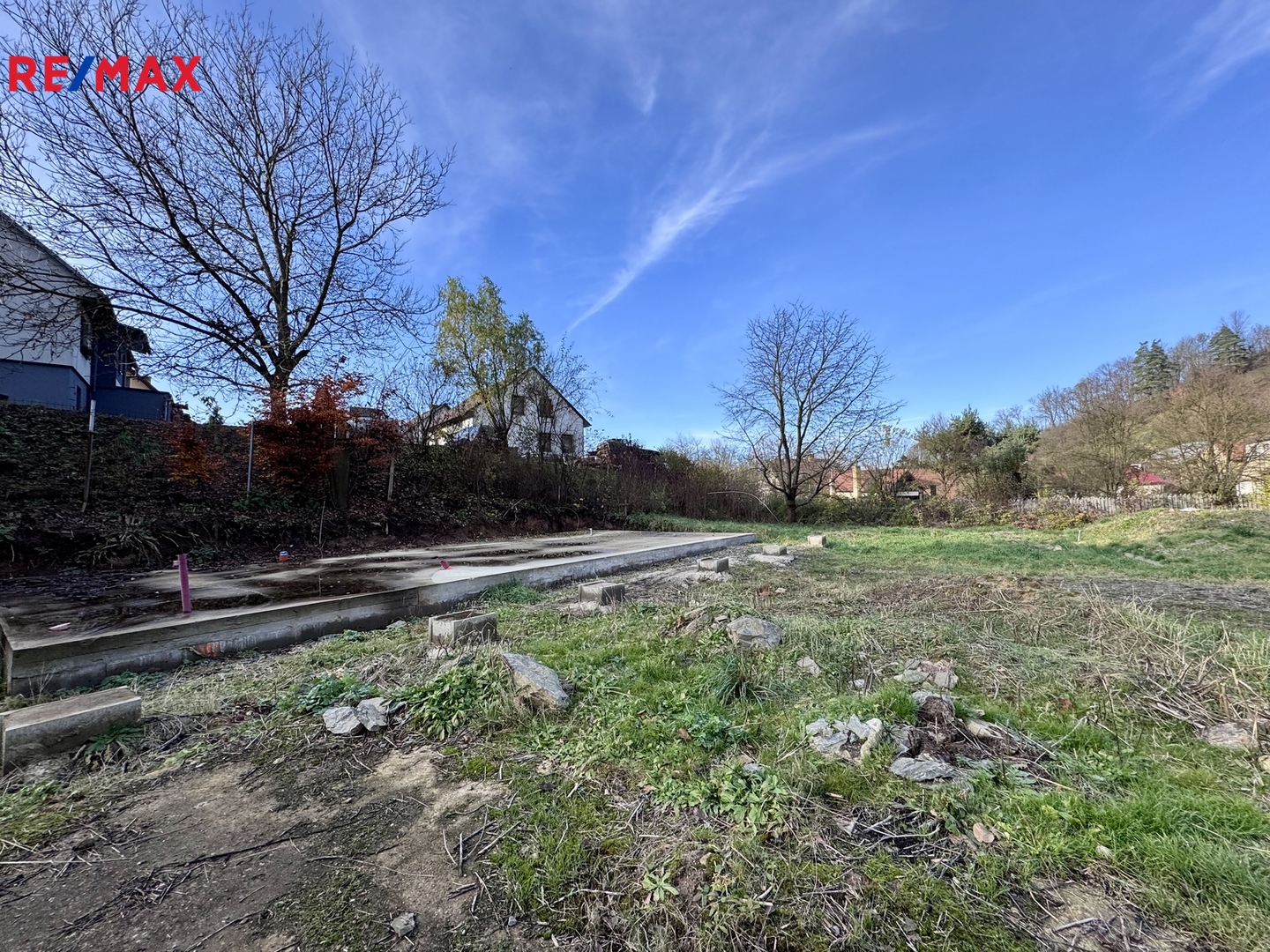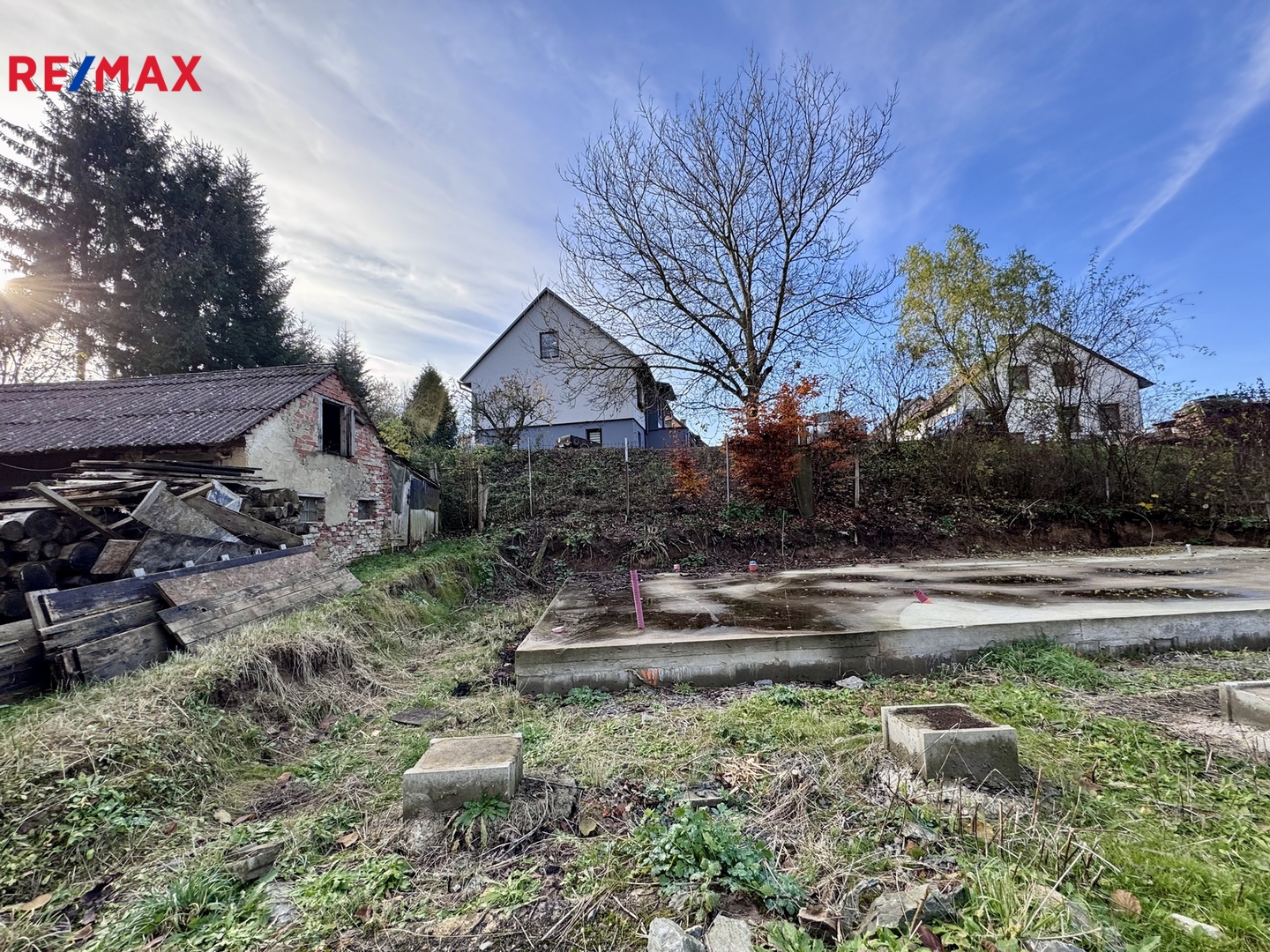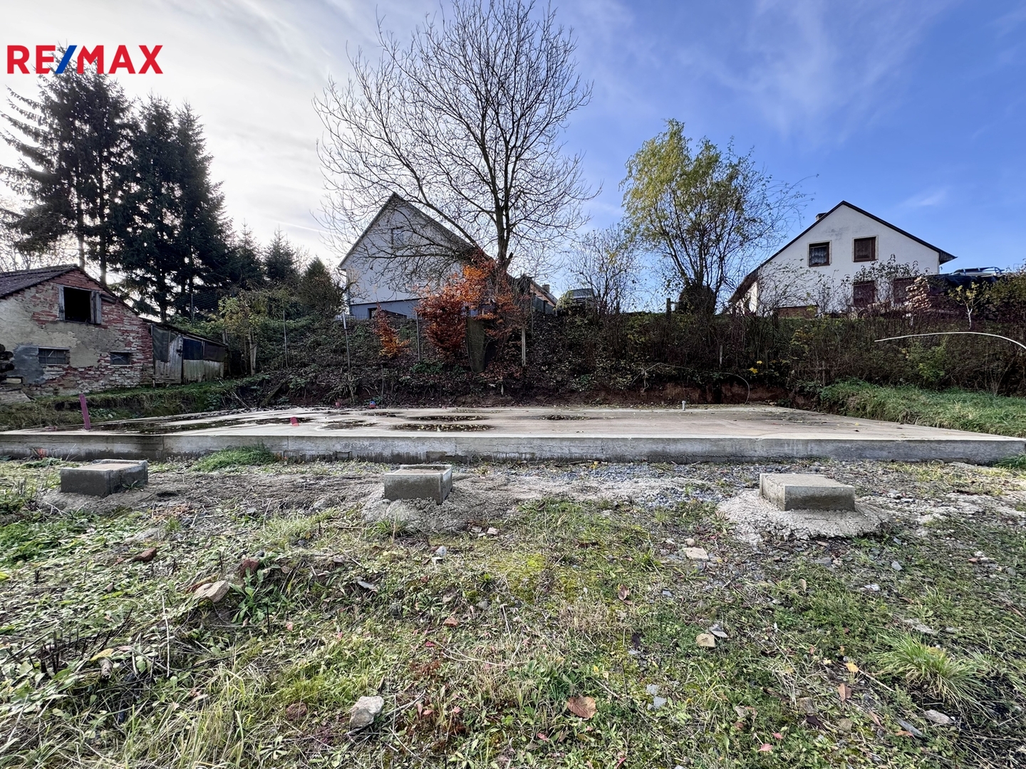 Na jedné z parcel je již vybudována základová deska pro plánovaný záměr rodinného domu - dřevostavbu o zastavěné ploše 93 m².