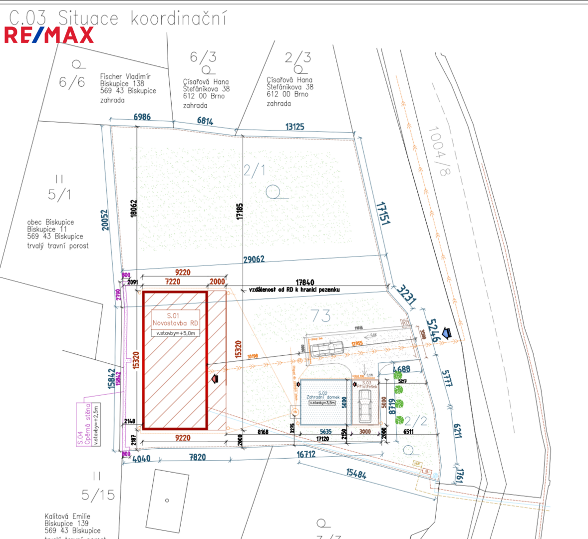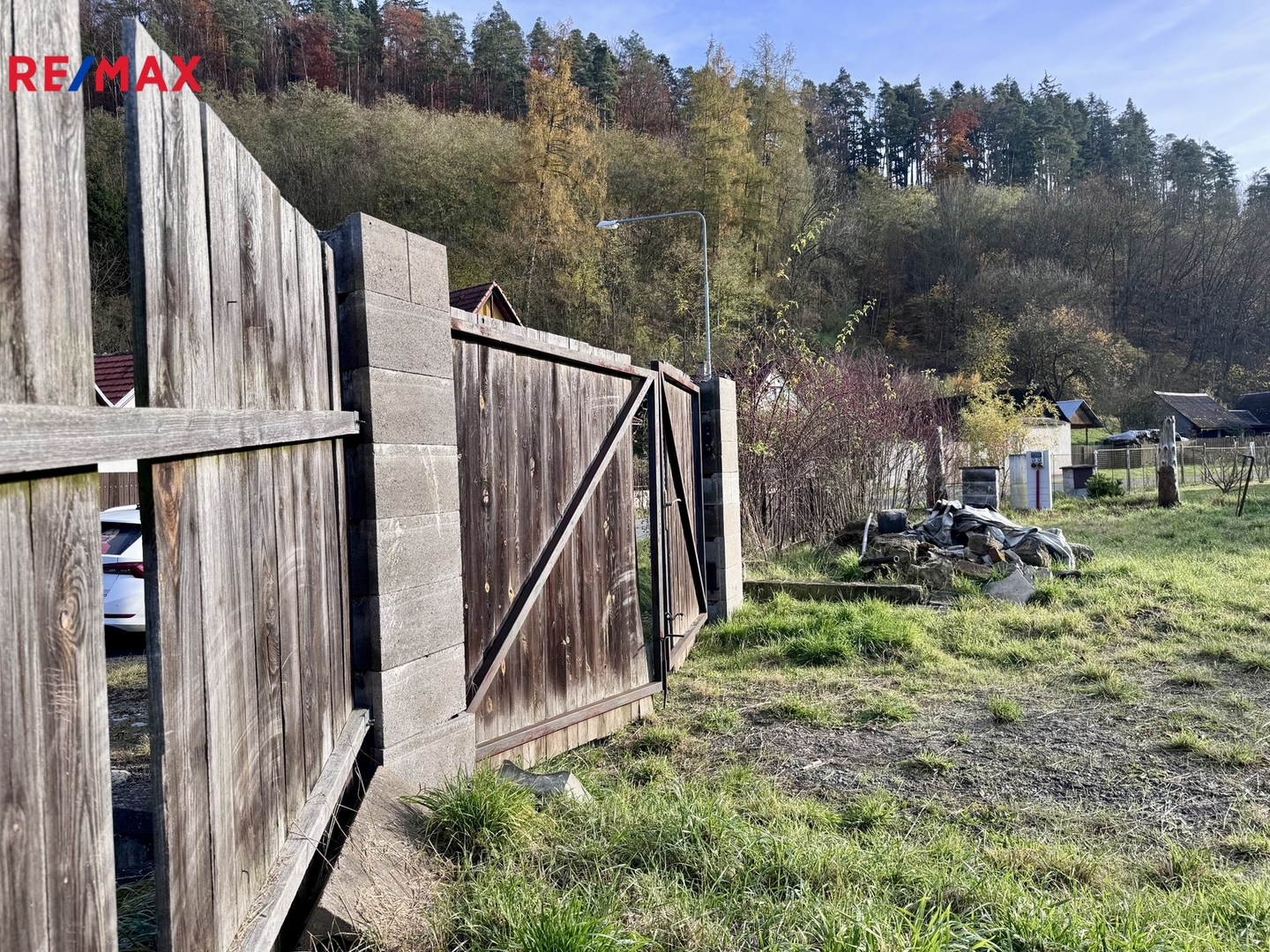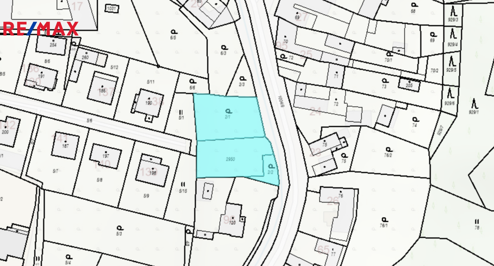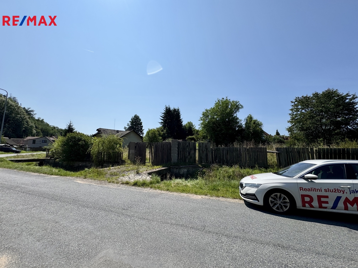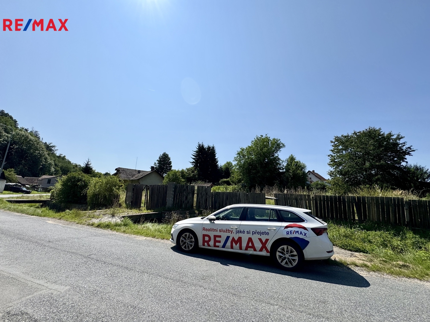 Pozemek tvoří tři samostatné parcely. Součástí prodeje je stavební povolení včetně projektové dokumentace.