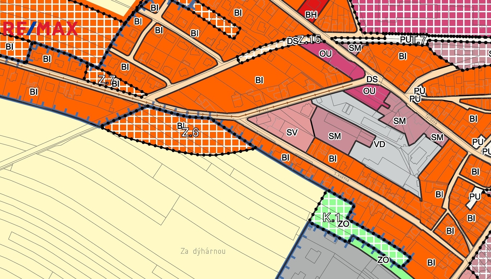 Celková výměra dvou pozemků je 8.513 m². Územním plánem je cca 2.870 m² zahrnuto do plochy pro bydlení individuální, což znamená s možností výstavby rodinného domu. Menší ze dvou pozemků o výměře 1.401 m² je zahrnut územním plánem do plochy ochranné a izolační zeleně.
