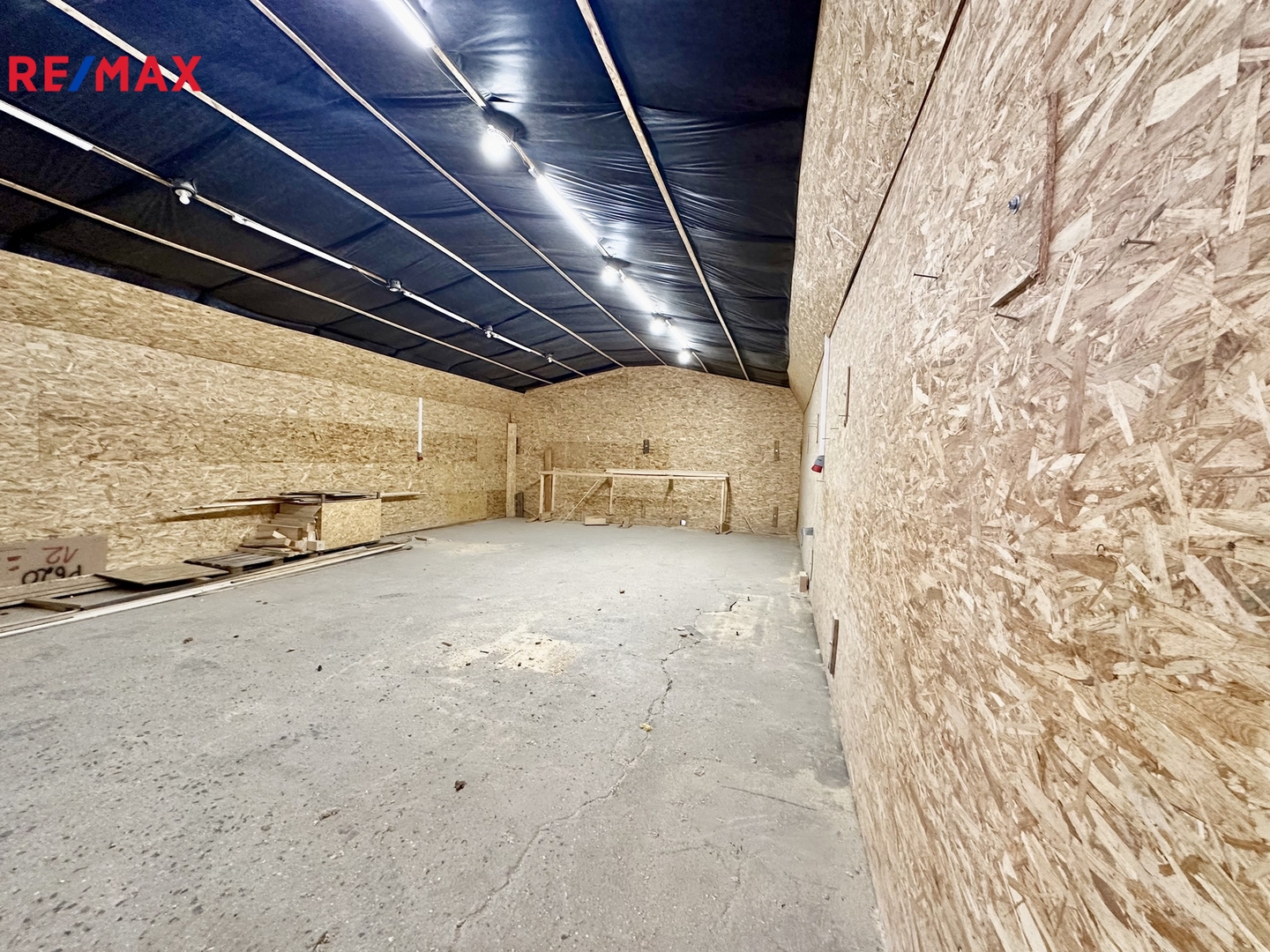 Uzavřený podlouhlý prostor s buňkou, kde bude doplněna toaleta. Je zde elektřina i voda, plocha je čistá, udržovaná a připravená k okamžitému využití.