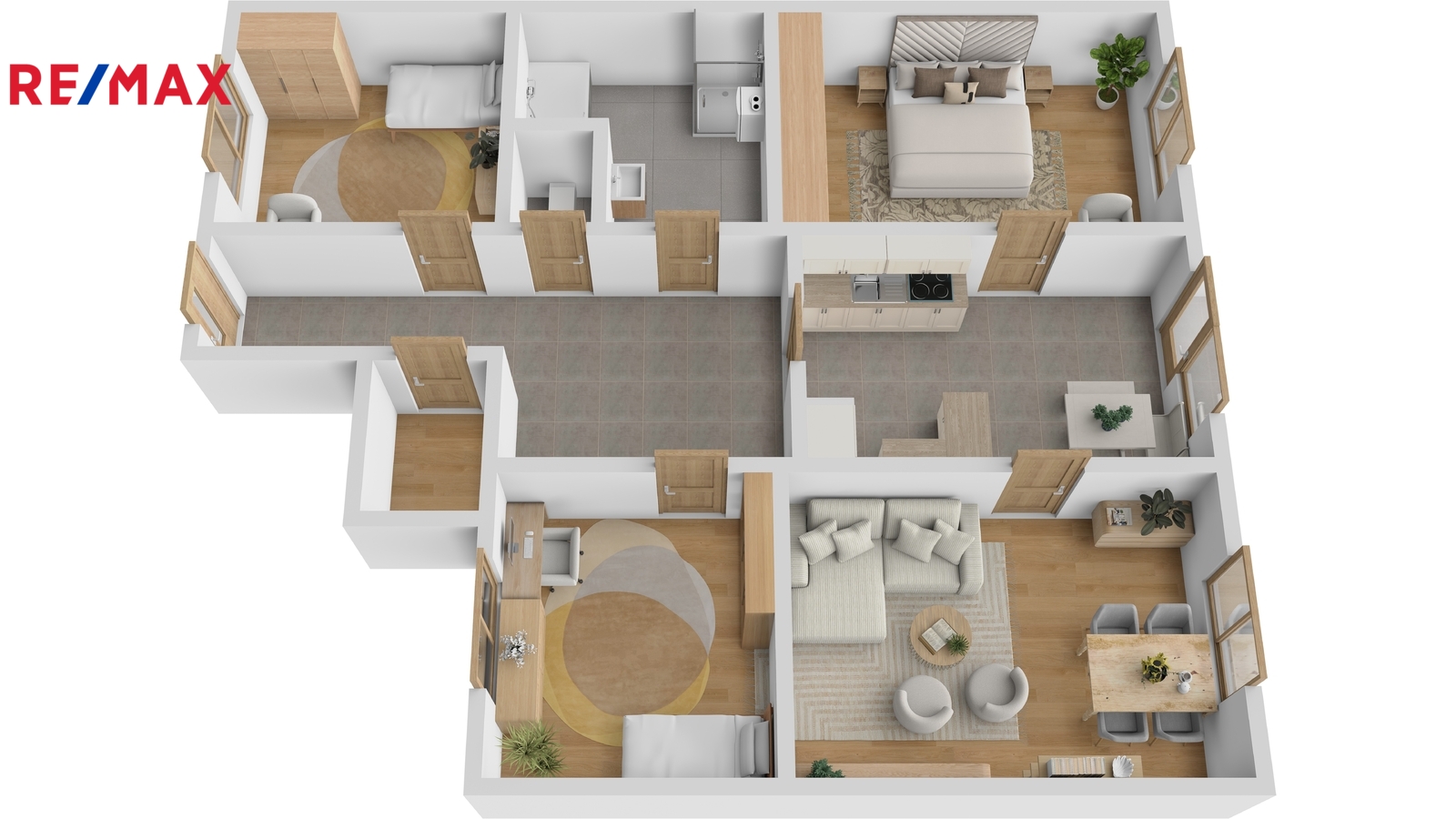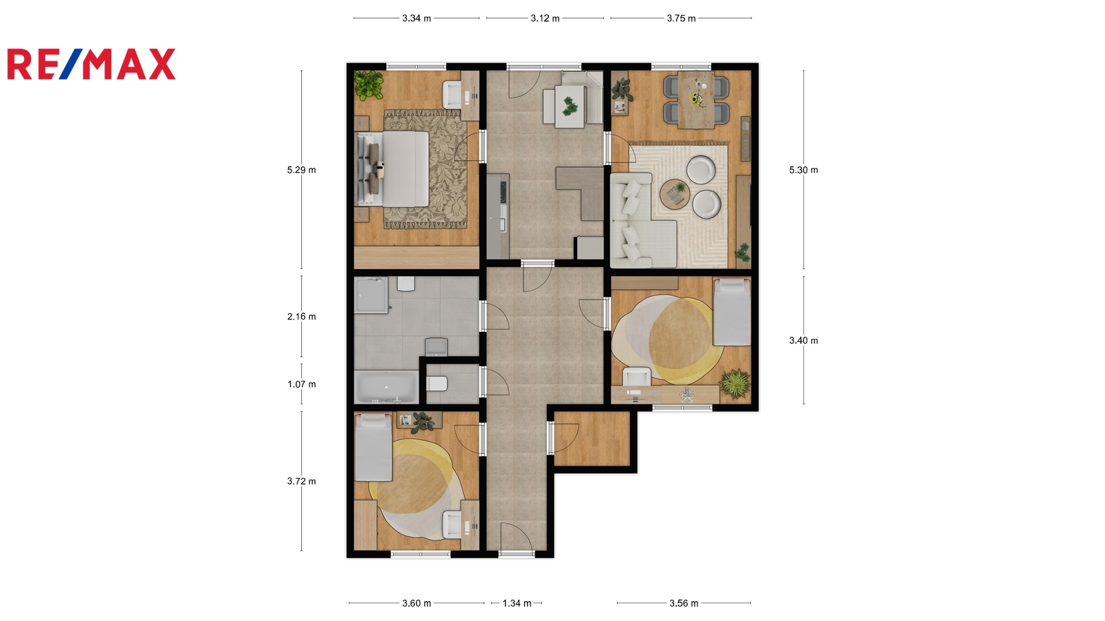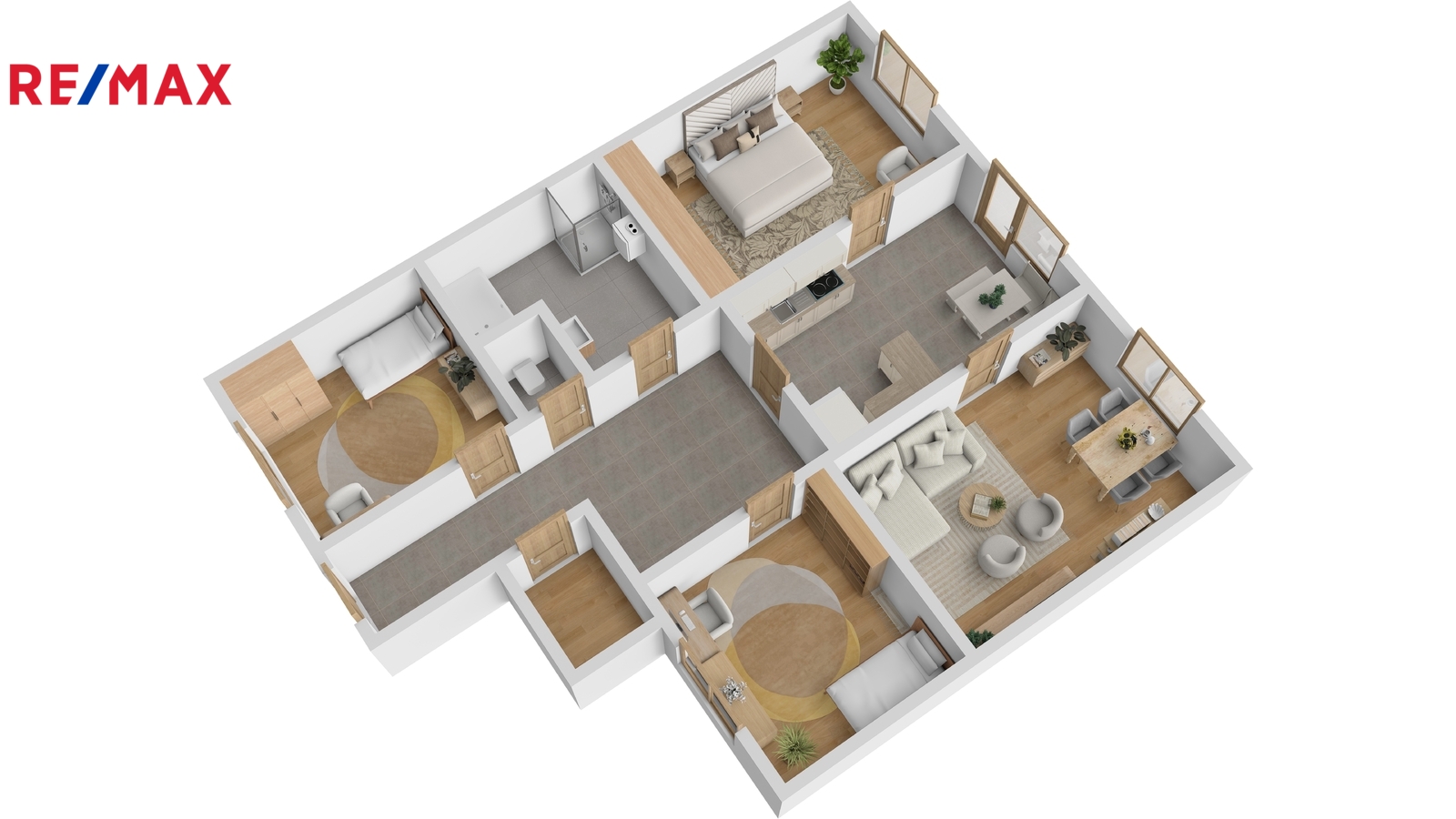 1) Čtyři samostatné neprůchozí pokoje poskytnou dostatek prostoru a soukromí