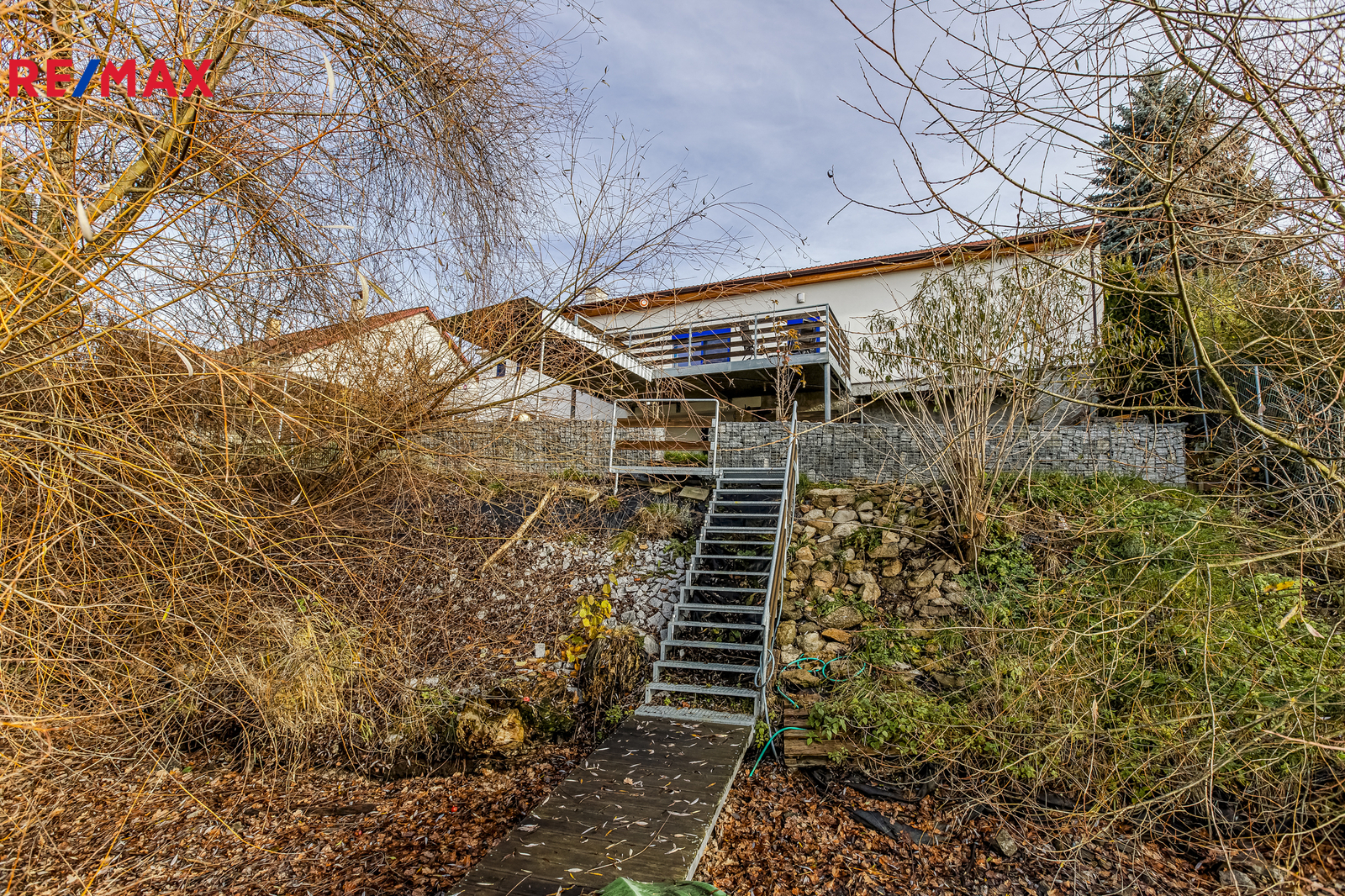 Nechybí ani několik vzrostlých stromů, které dodávají pozemku příjemnou atmosféru.