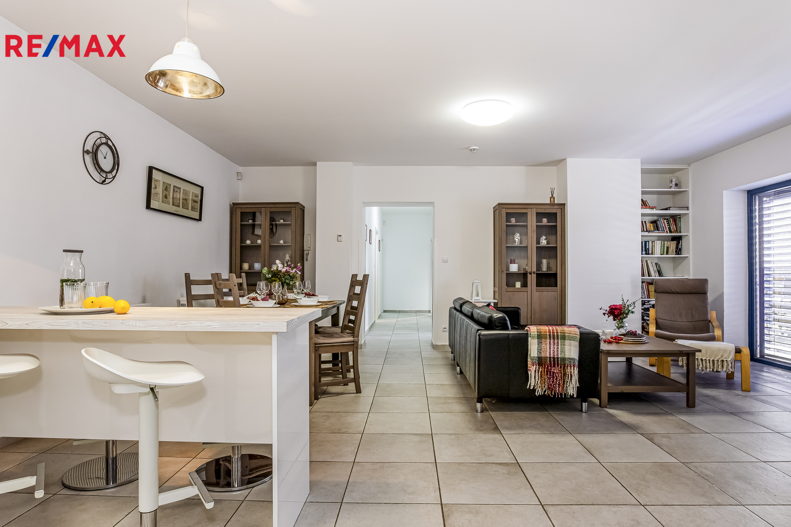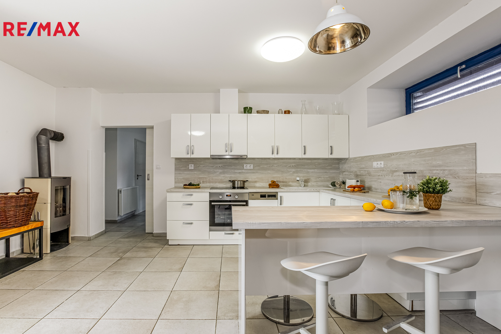 Interiér tvoří prostorný obývací pokoj s krbovými kamny a přímým vstupem na terasu, moderní kuchyně se spotřebiči, jídelní kout, tři samostatné pokoje, koupelna se sprchovým koutem a WC a další samostatné WC s technickou místností. Vše je v perfektním stavu, zařízeno – stačí si přinést osobní věci a začít bydlet.