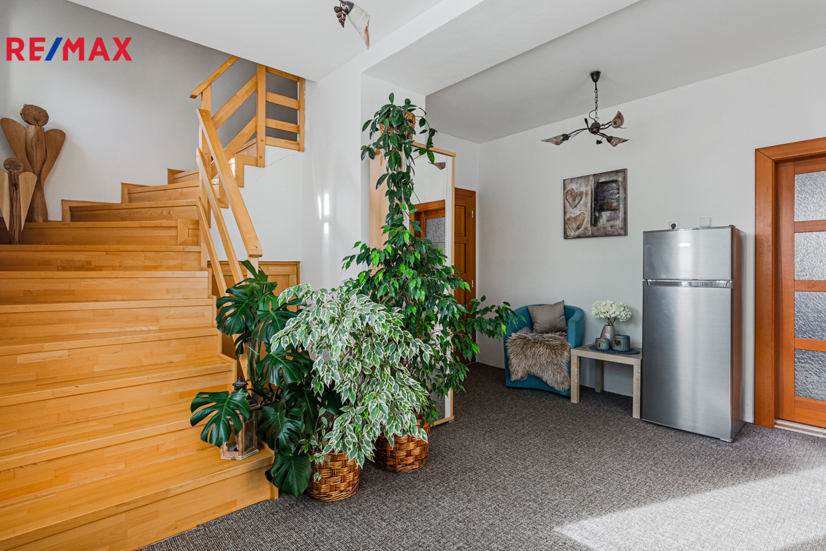 Komfort bydlení zvyšuje udržovaná zahrada s pergolou a bazénem s protiproudem. Budoucí majitel jistě ocení také skleník a kopanou studnu. Součástí objektu je vedlejší stavba o velikosti 80 m², která slouží jako garáž a zároveň nabízí dvě dílny a dvě hospodářské místnosti. Tato stavba má po celé své ploše využitelný půdní prostor a je částečně podsklepena.