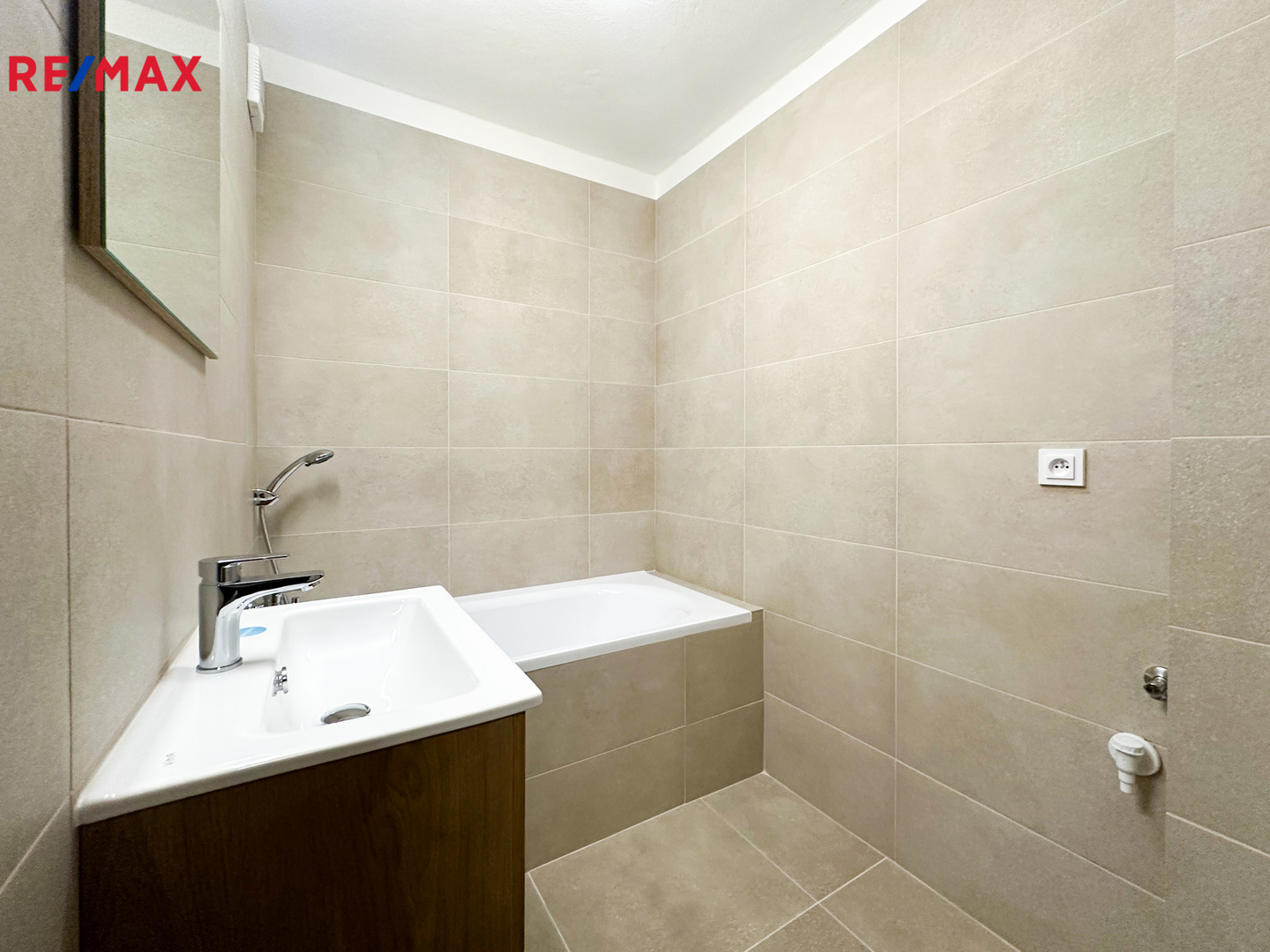 Jednotka je po kompletní rekonstrukci. Byt je světlý, má praktické dispoziční řešení – obývací pokoj s kuchyňským koutem,velkou vstupní chodbu a koupelnu se vanou a samostatné WC. Byt je vybaven předokenními roletami.