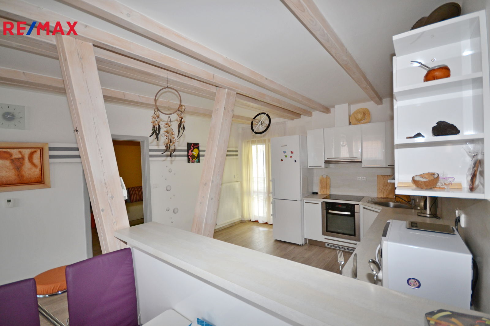 Parkování se nachází před domem na náměstí. Cihlový dům prošel kompletní rekonstrukcí, bytová jednotka vznikla přestavbou roku 2015, rozvody elektřiny v mědi 230 V, rozvody vody v plastu, samostatné vytápění řešené plynovým kotlem. Podlahy jsou pokryté PVC a dlažbou, kuchyňská linka včetně vestavěných spotřebičů, indukční varná deska, trouba, myčka, digestoř, lednice s mrazničkou. V koupelně je sprchový kout, umyvadlo, plynový kotel se zásobníkem teplé vody, pračka a sušička. Ve všech oknech jsou žaluzie, v pokojích jsou vestavěné skříně, v obývacím pokoji s kuchyní, ložnici a pokoji je klimatizace. V bytě je zavedena TV, volné od 1.12.2025, vhodné pro 1-3 osoby.