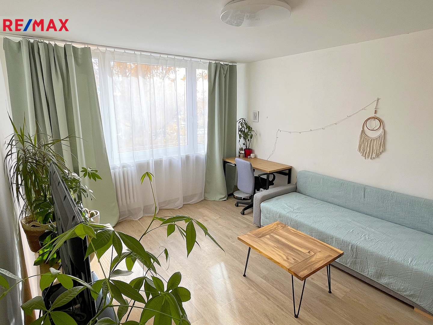 • slunný obývací pokoj s kuchyňským koutem (sporák, pračka, lednice)