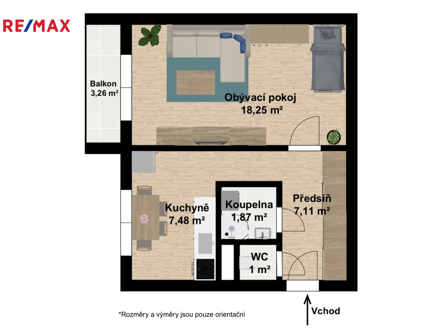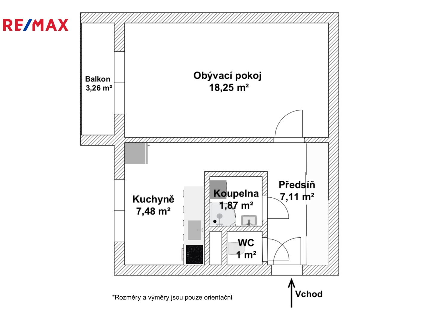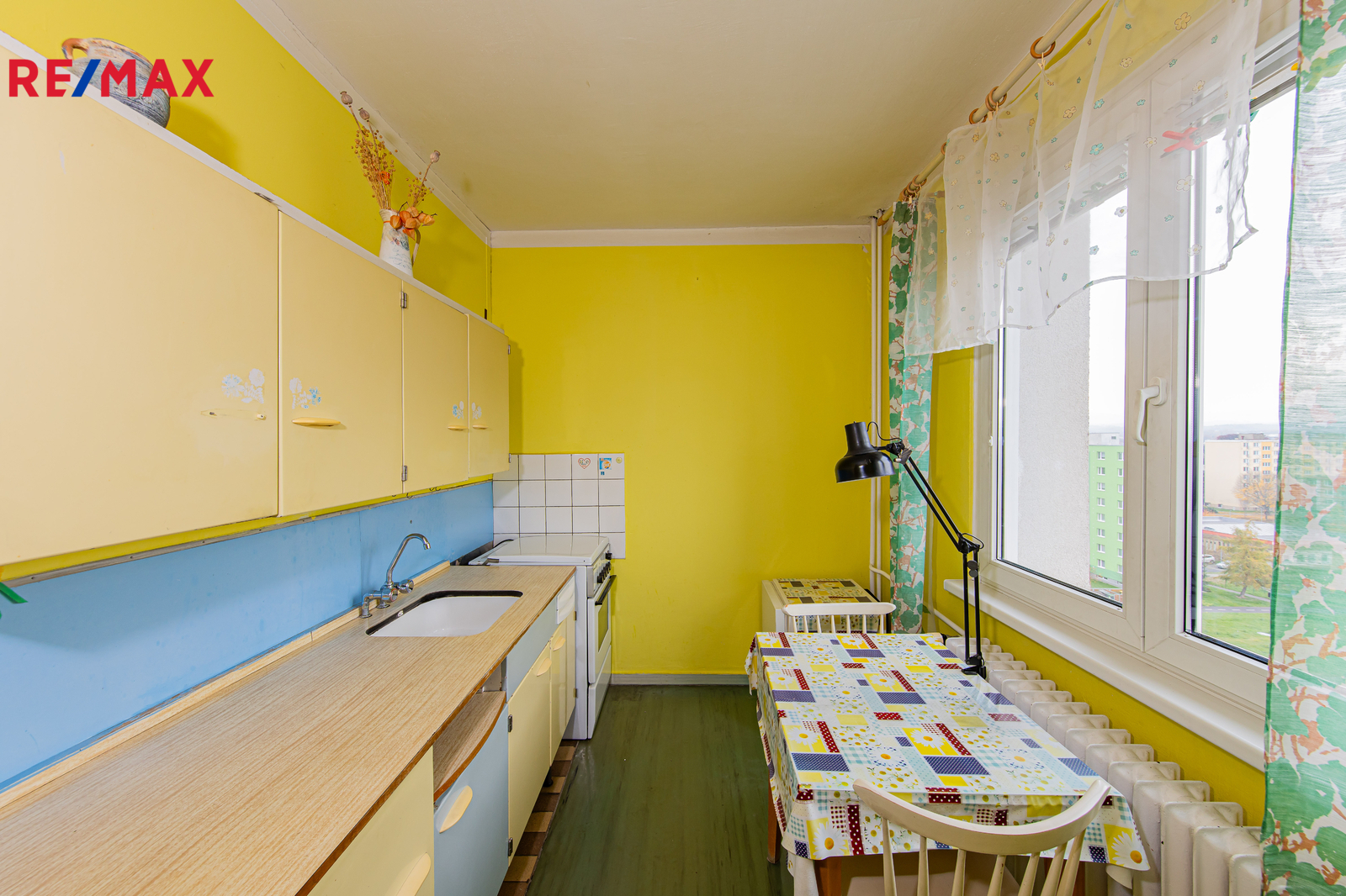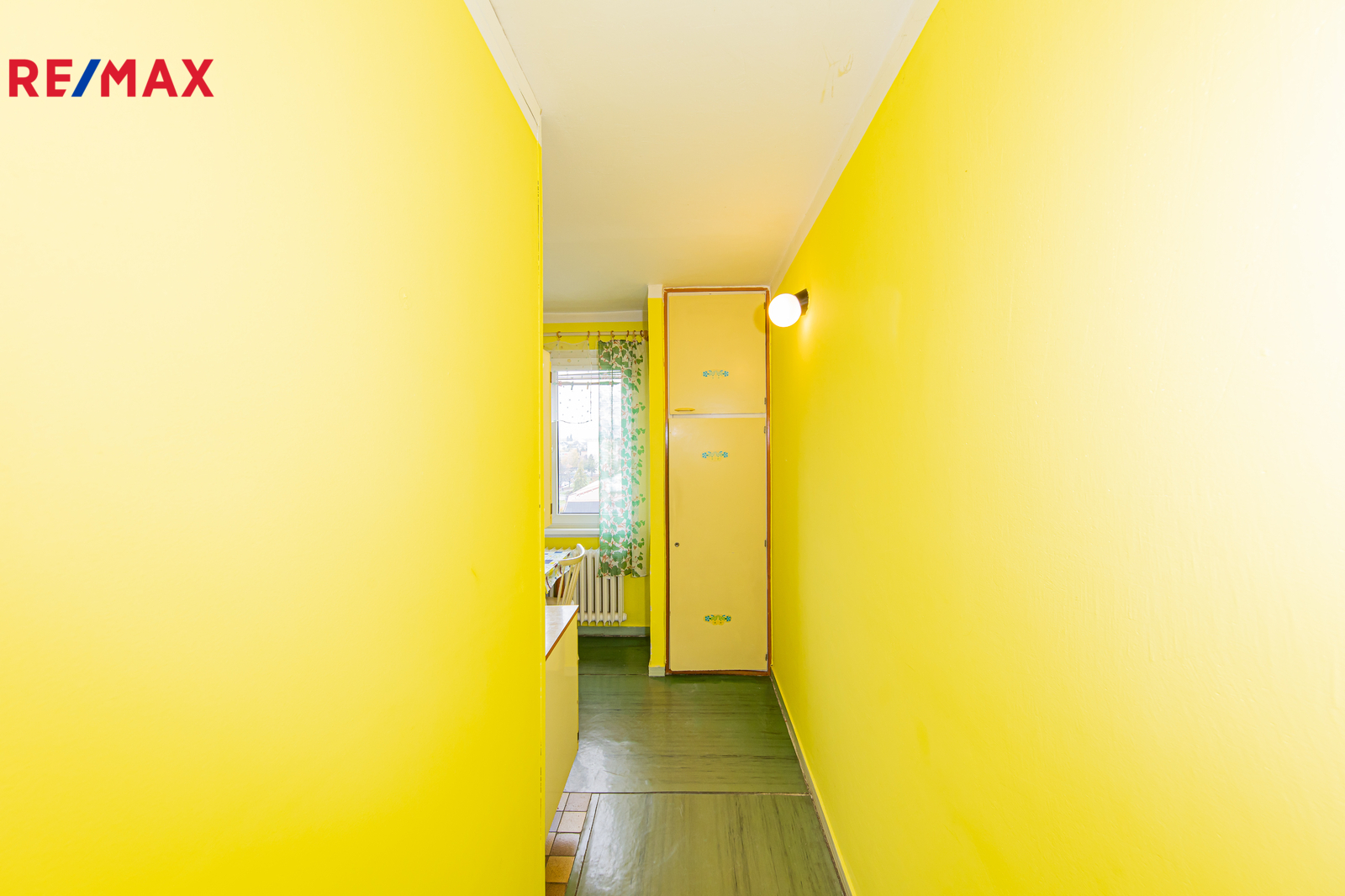 Byt o velikosti 36 m2 podlahové plochy, s balkonem 4,3 m2 a sklepní kójí 1 m2 se nachází v 9. z celkem 10. nadzemních podlaží zrekonstruovaného panelového domu s výtahem.