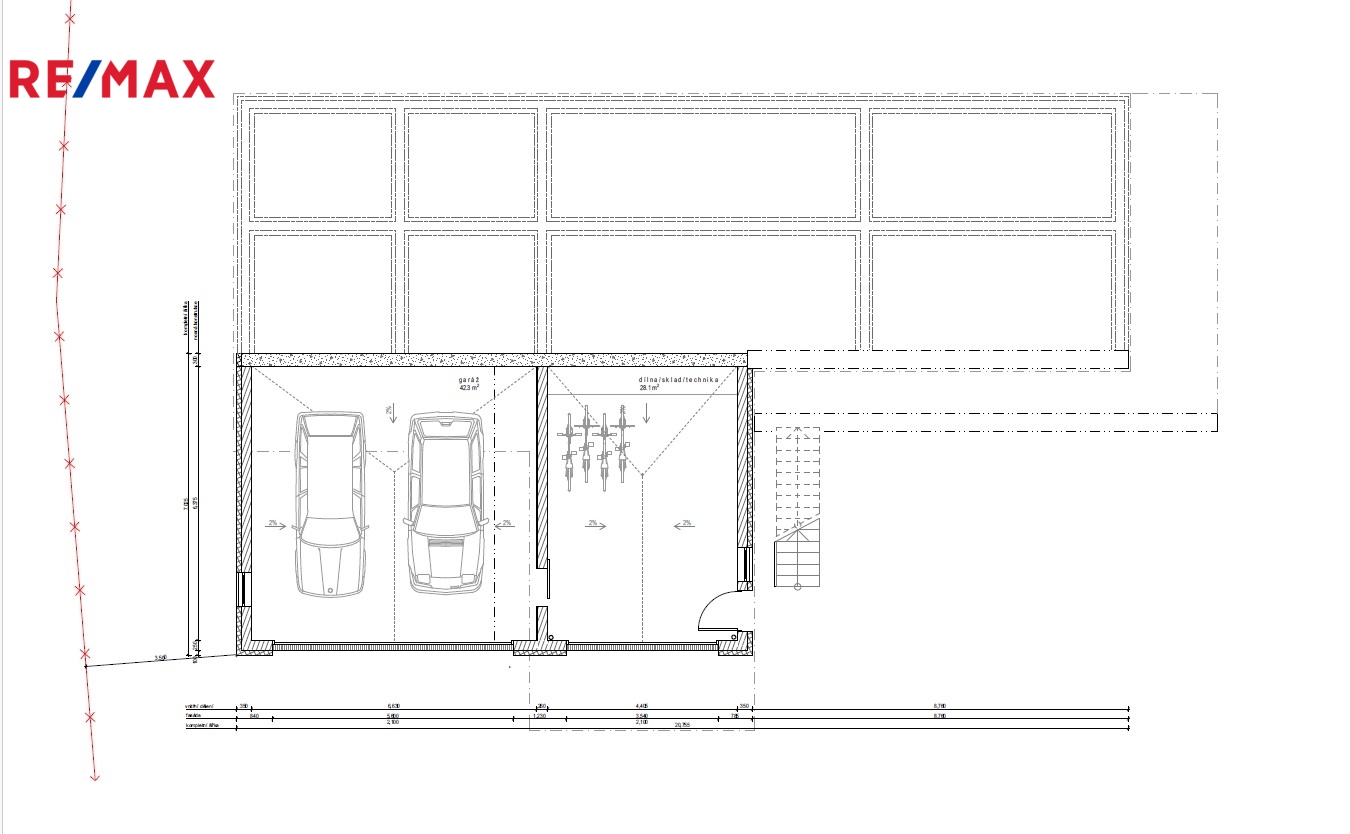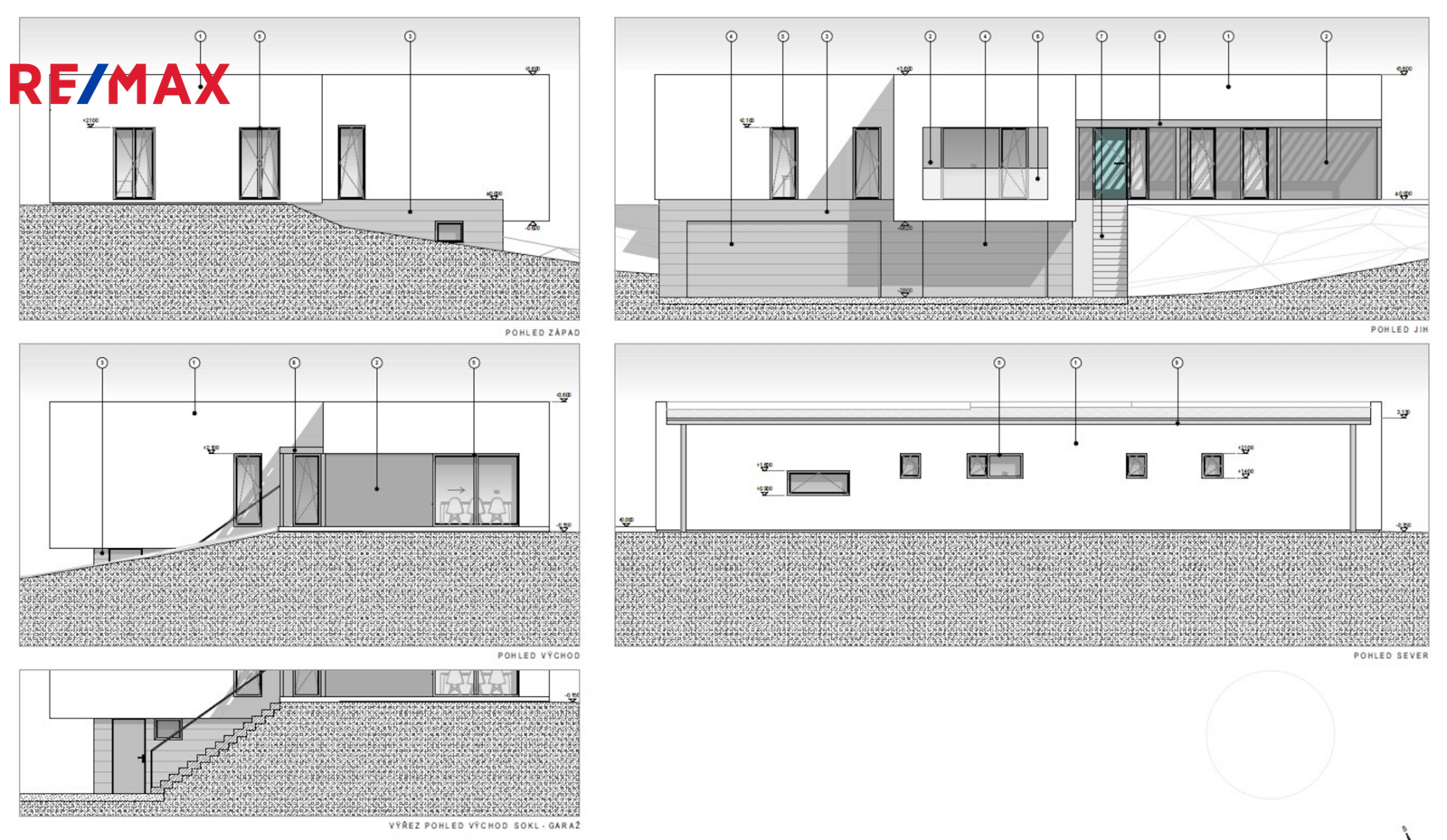 • vydané stavební povolení – moderní bungalov ve tvaru T, se dvěma dvojgarážemi a obytným patrem