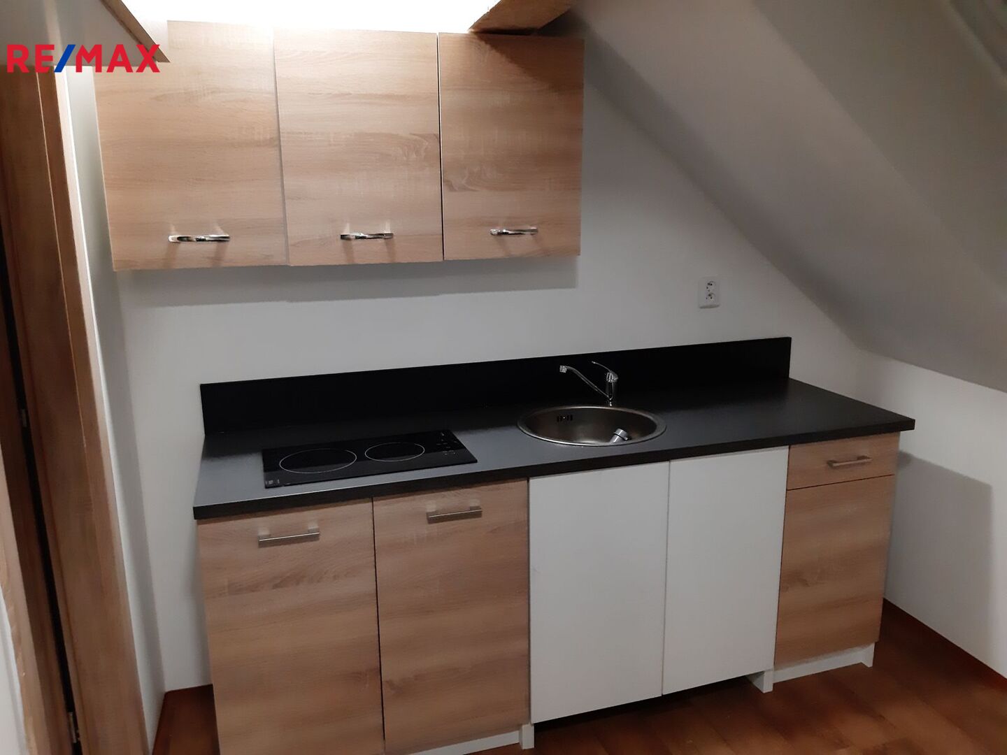 Se souhlasem majitele nabízíme do pronájmu zcela nový byt 1+kk nacházející se v podkroví domu.