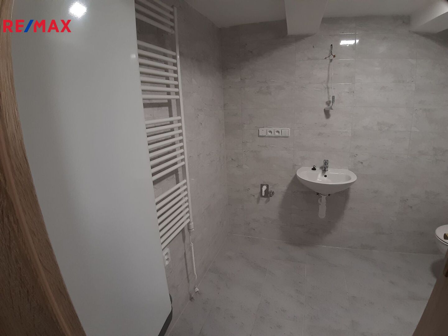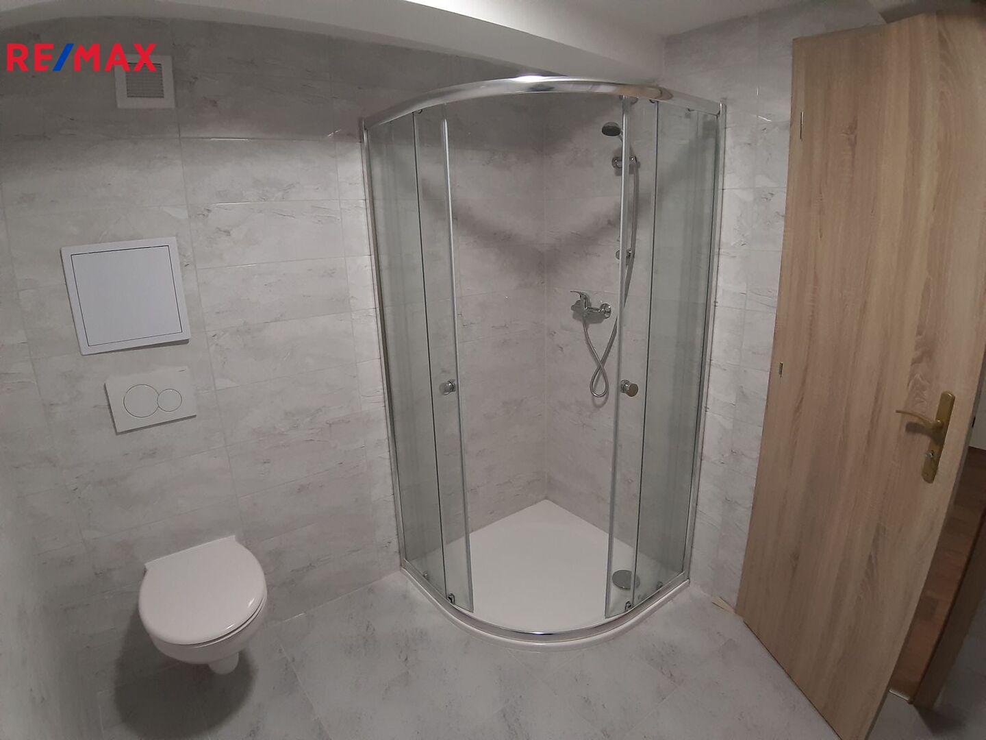 Koupelna s wc, vývod na pračku, sprchový kout, kotel na ohřev vody.