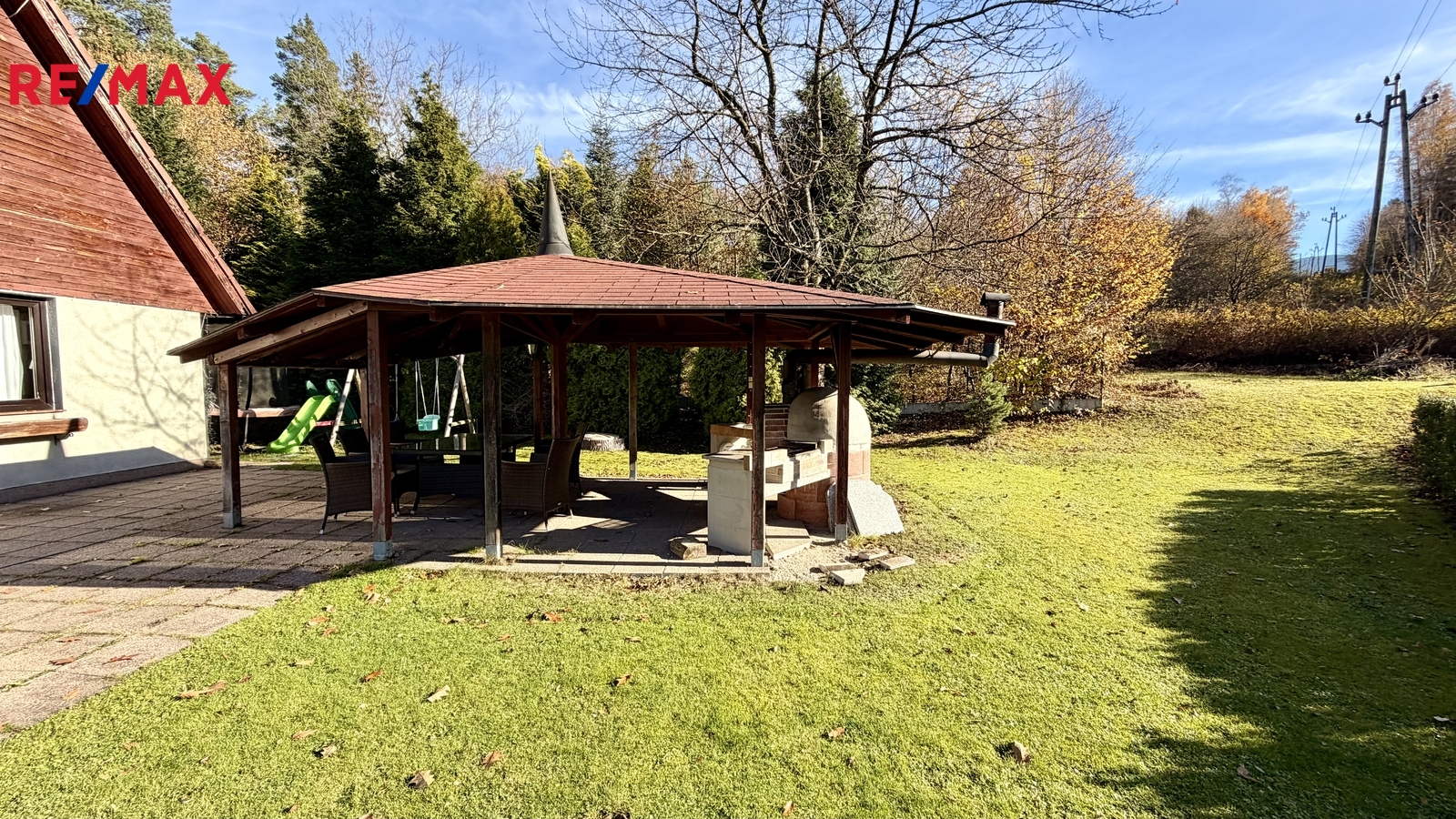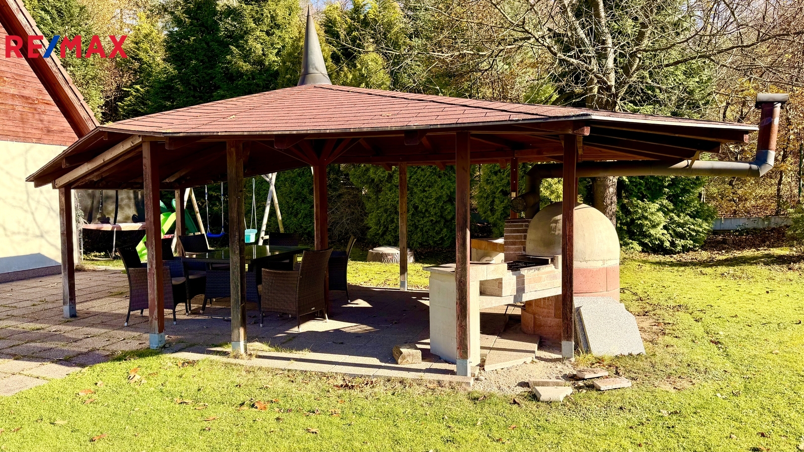 I když je domeček součástí většího pozemku, na němž se nachází i dům majitele, bude mít nájemce dostatek soukromí pro své bydlení. K dispozici bude mít zahradu o výměře cca 800 m2, zastřešenou pergolu s grilem a sezením, až 3 parkovací místa na parkovišti před domem. Vjezd po společné příjezdové cestě, brána na dálkové ovládání.
