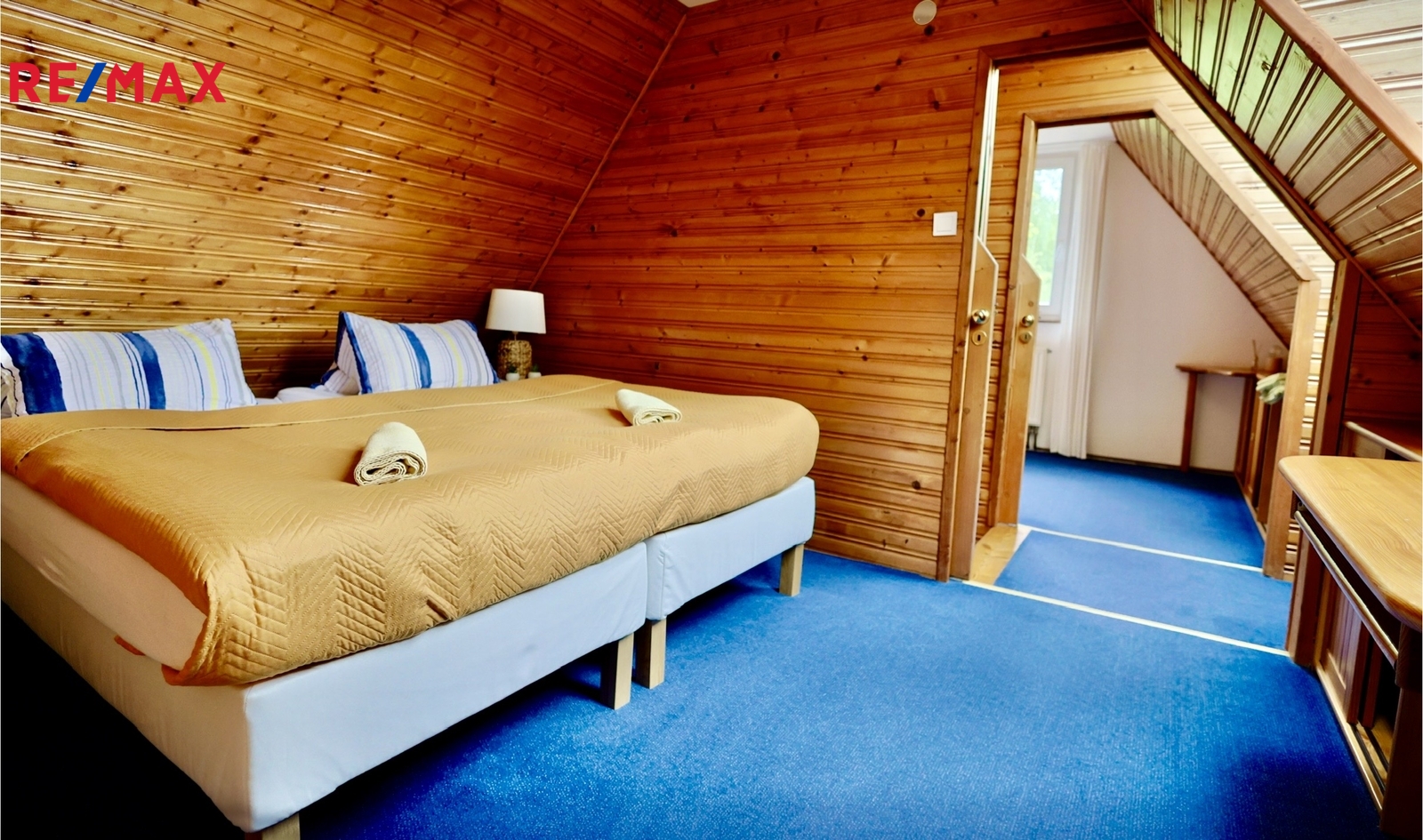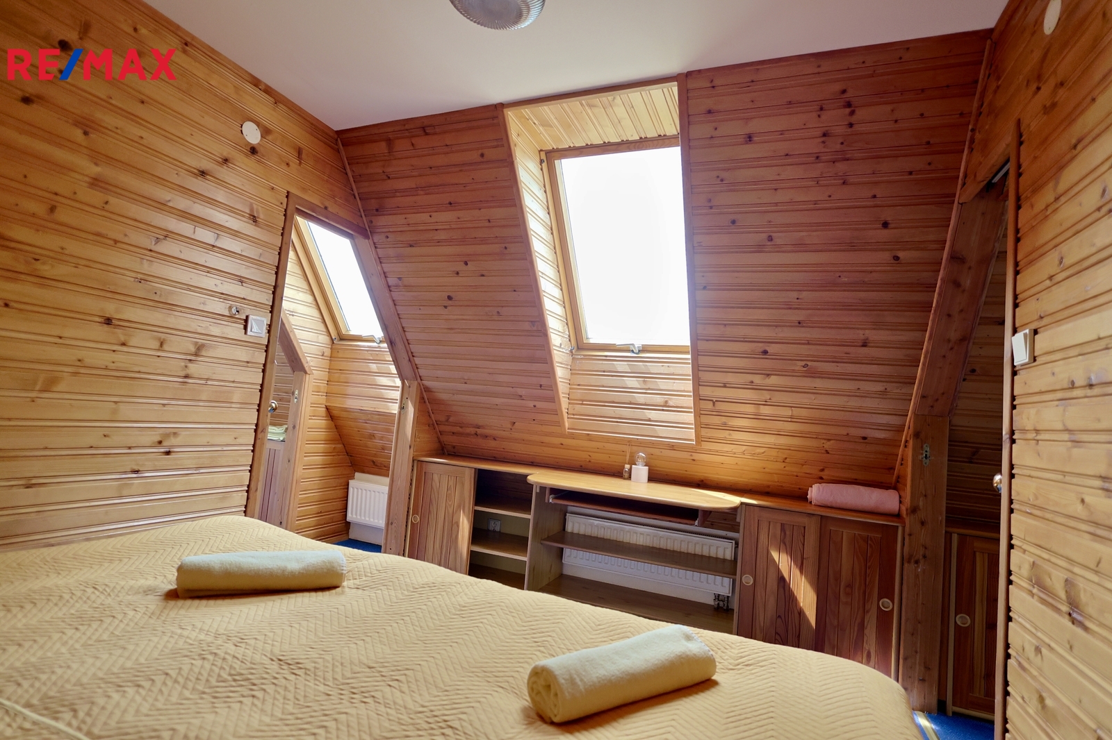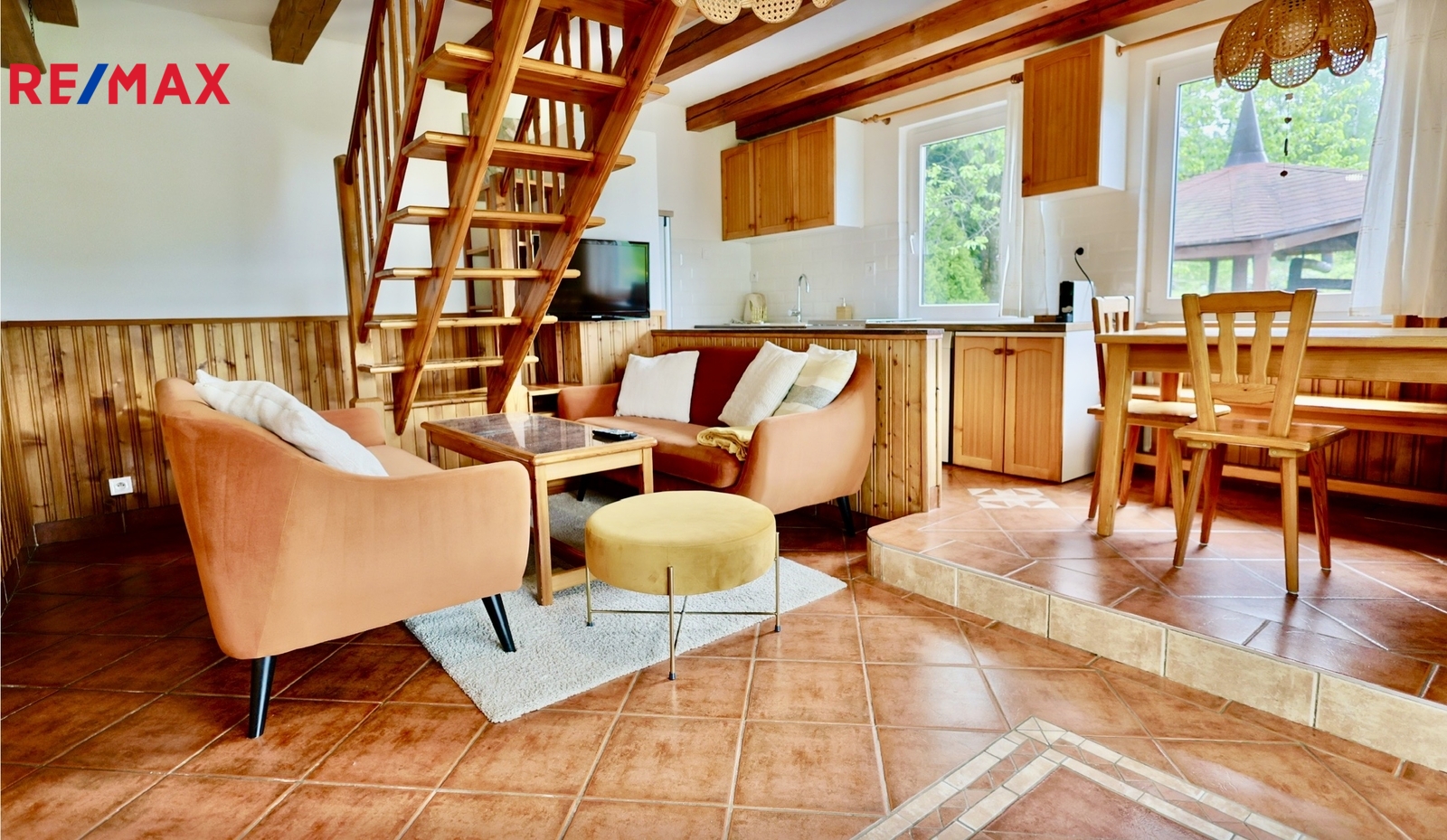 Útulný domeček o jednom podlaží + podkroví má zastavěnou plochu 53 m2, využitelná podlahová je 90 m2, velikost 4+kk.