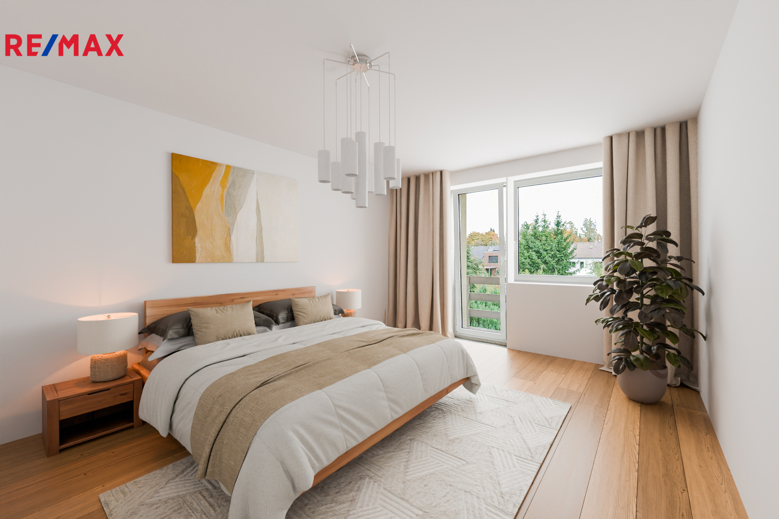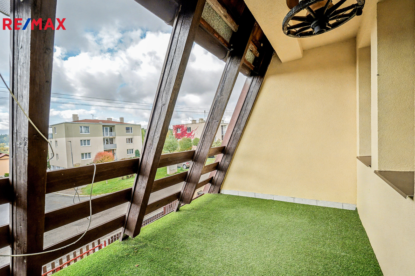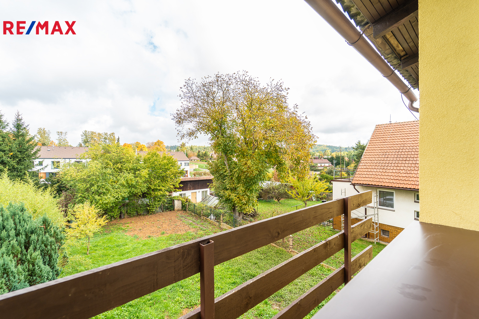 Z obývacího pokoje je vstup na prostorný balkon s výhledem do zahrady.