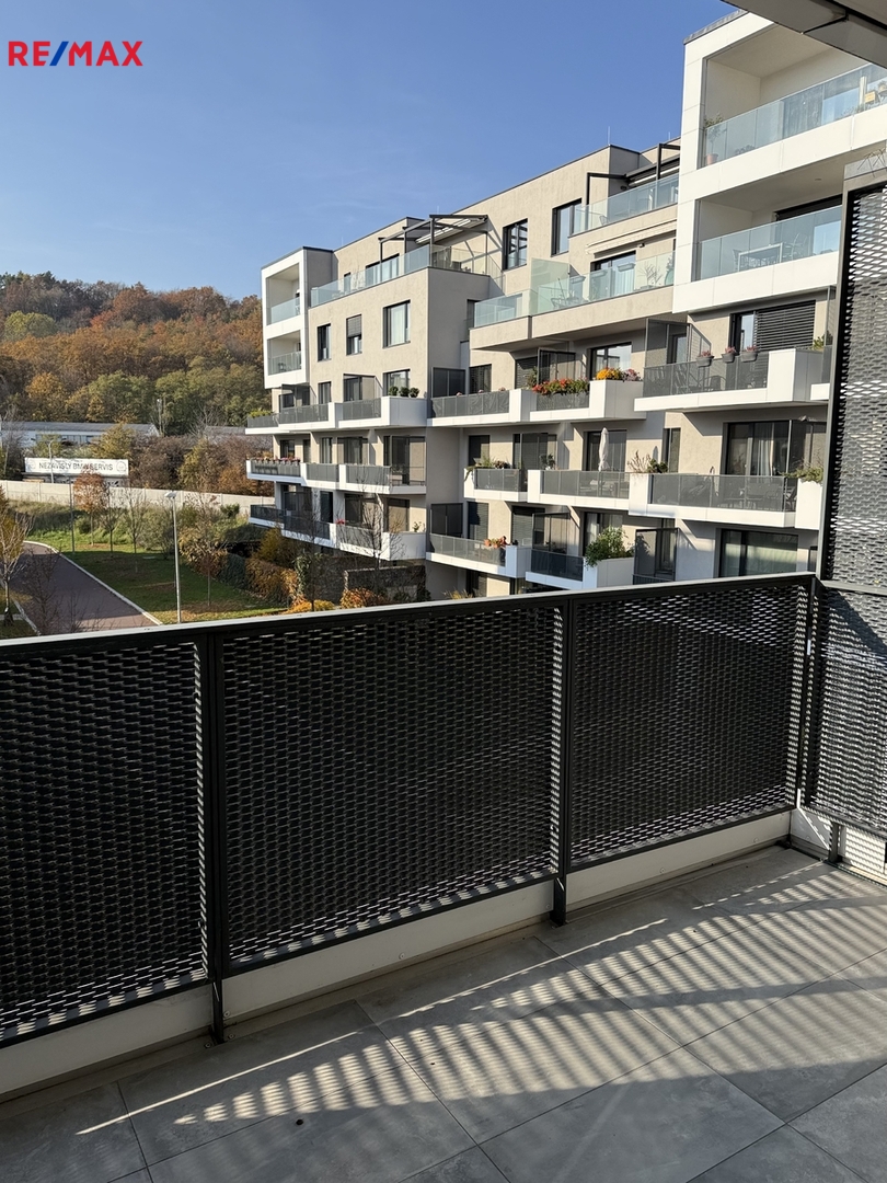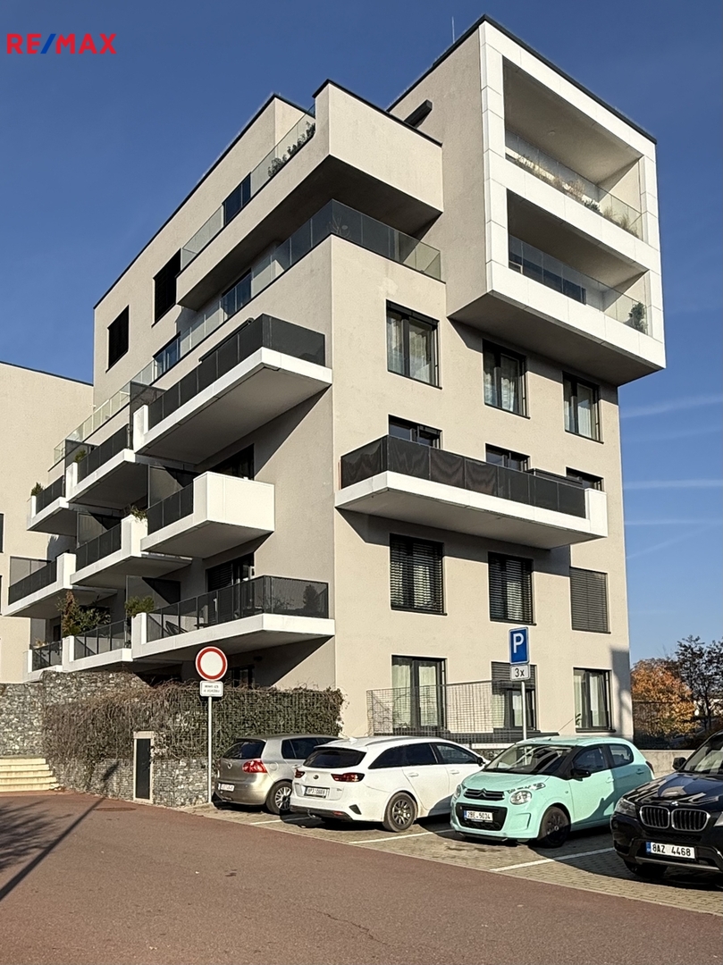 Byt nabízí dvě terasy orientované na jih a západ, které poskytují krásný výhled a jsou ideálním místem pro relaxaci. K bytu náleží také garážové stání v prvním podzemním patře a možnost dalšího parkování na venkovním parkovišti v okolí domu.