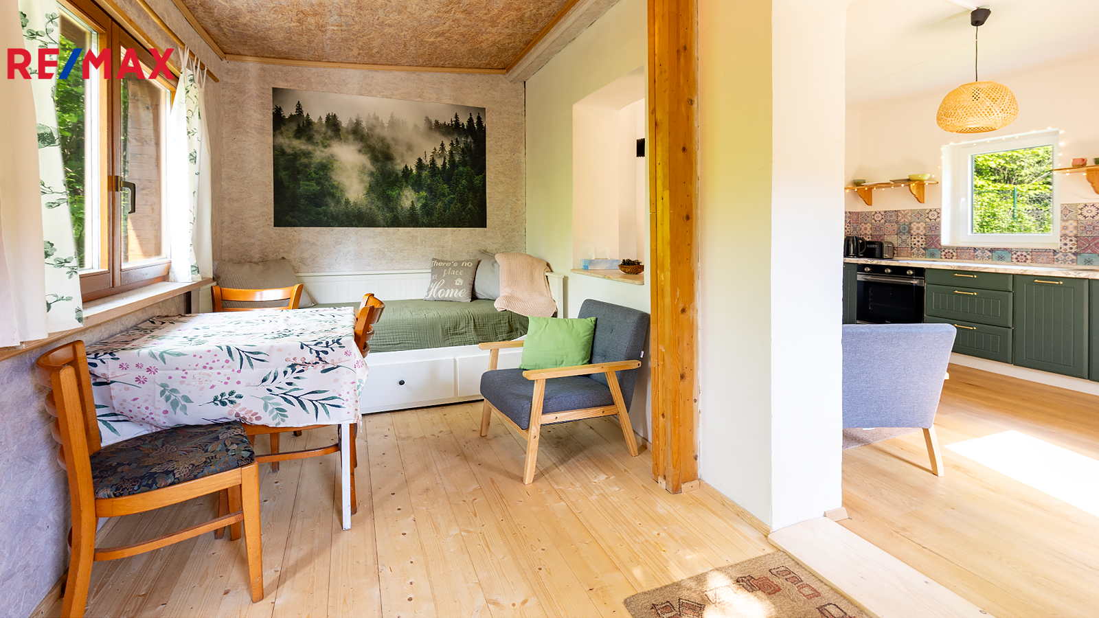 V tiché osadě Starý Šidlov, obklopené lesy a klidem, se nachází malá, převážně zděná a zateplená chatička, která je připravena k dlouhodobému pronájmu. Nabízí užitnou plochu 41 m², ve které najdete obytnou předsíň, kuchyň, koupelnu se sprchovým koutem a ložnici v patře. Uvnitř vás potěší krbová kamna, která spolu s elektrickými olejovými radiátory zajišťují teplo i během chladných měsíců. Voda je přivedena ze studny, odpadní vody jsou svedeny do septiku a pro ohřev vody je k dispozici bojler o objemu 50 litrů.
