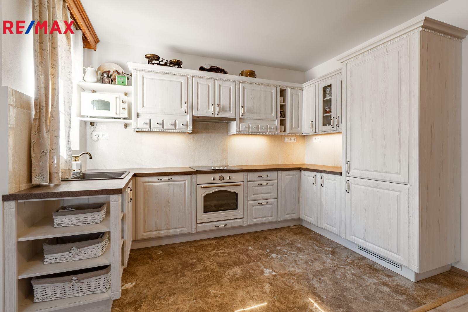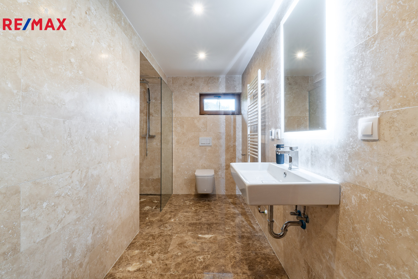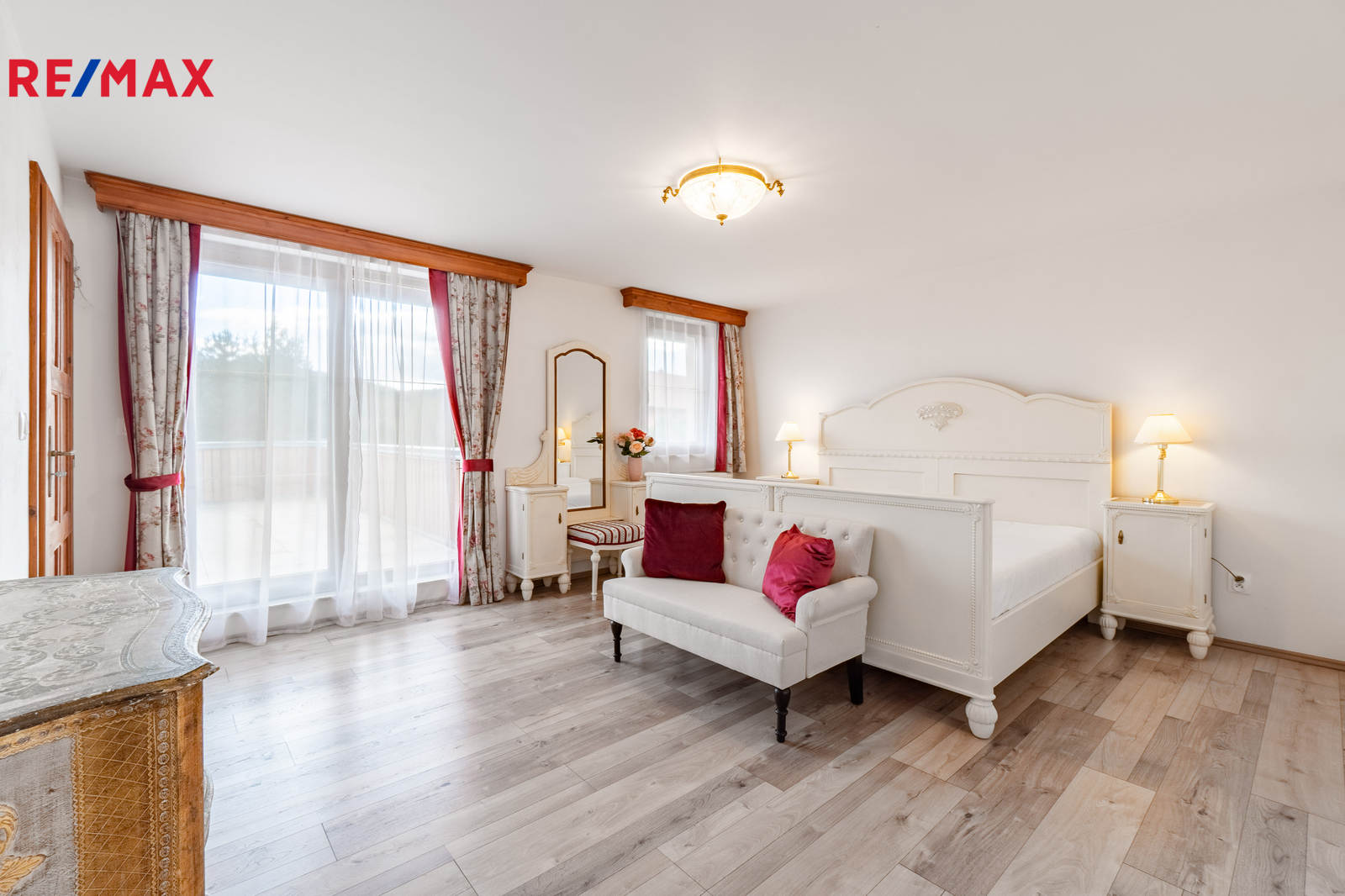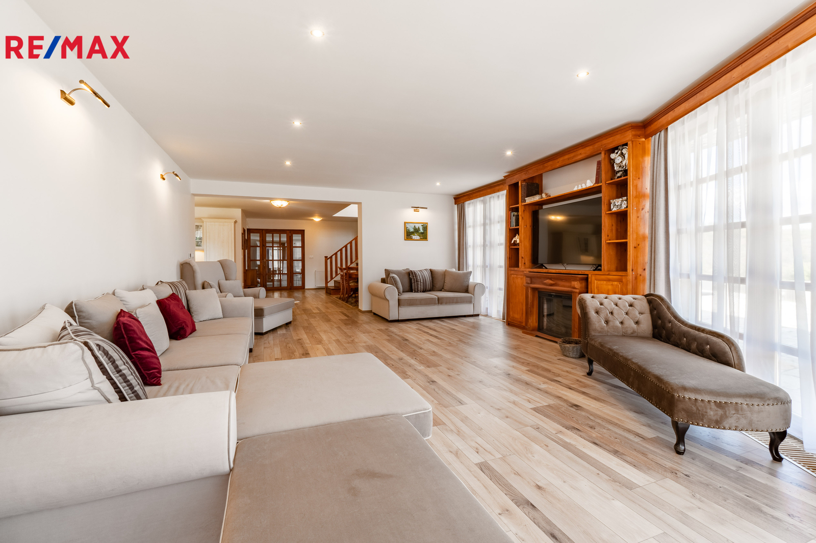 V přízemí domu se nachází prostorný obývací pokoj, kuchyň s jídelnou a dvě ložnice s koupelnou a toaletou, všechny tyto prostory mají přímý vstup na rozlehlou terasu. V patře jsou dvě prostorné ložnice, každá s vlastní koupelnou a toaletou a vlastním vstupem na balkon, respektive terasu. Prostory k uskladnění nabízí půda. Technická místnost, prostorná komora a šatna jsou k dispozici ve vstupní části přízemí, rovněž dvě krytá parkovací stání.