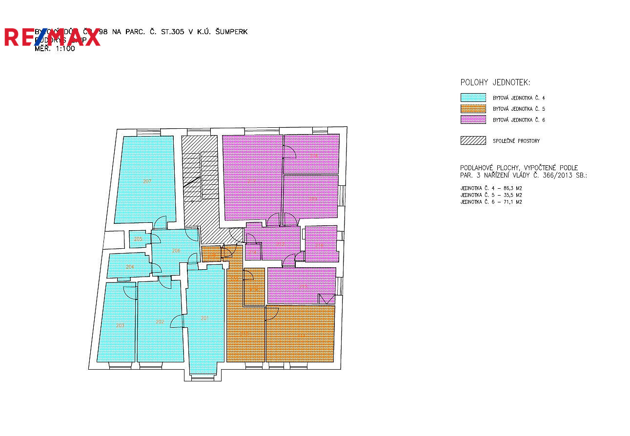 Hledáte stabilní investici v atraktivní lokalitě? Nabízím vám jedinečnou možnost koupě 5 samostatných bytových jednotek ve vyhledávané části města Šumperk, na ulici Gen. Svobody. Jedná se o 4 prostorné byty o dispozici 3+1 s výměrou od 64 do 97 m² a 1 byt s dispozicí 1+1 o velikosti 35 m². Ve 2. nadzemním podlaží jsou situovány 2 byty o dispozici 3+1 a jeden byt 1+1, ve 3. nadzemním podlaží pak další 2 byty o dispozici 3+1. Přízemí domu tvoří nebytové prostory, které nejsou součástí prodeje.