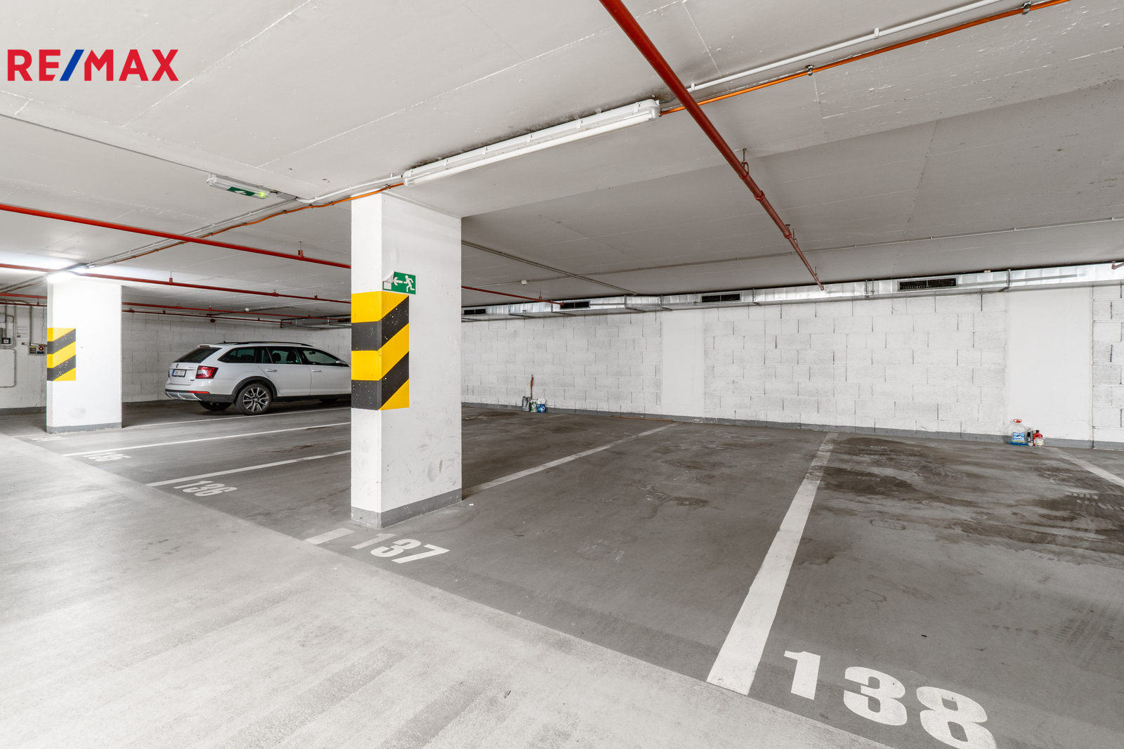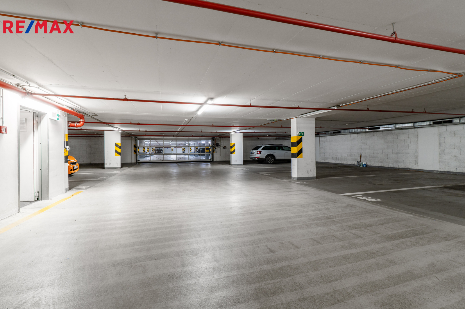 Součástí nájmu je parkovací stání v garáži v suterénu domu.