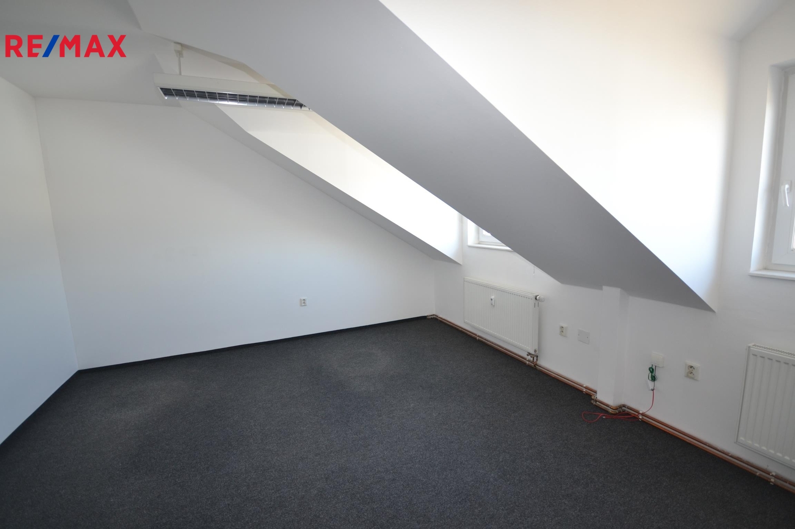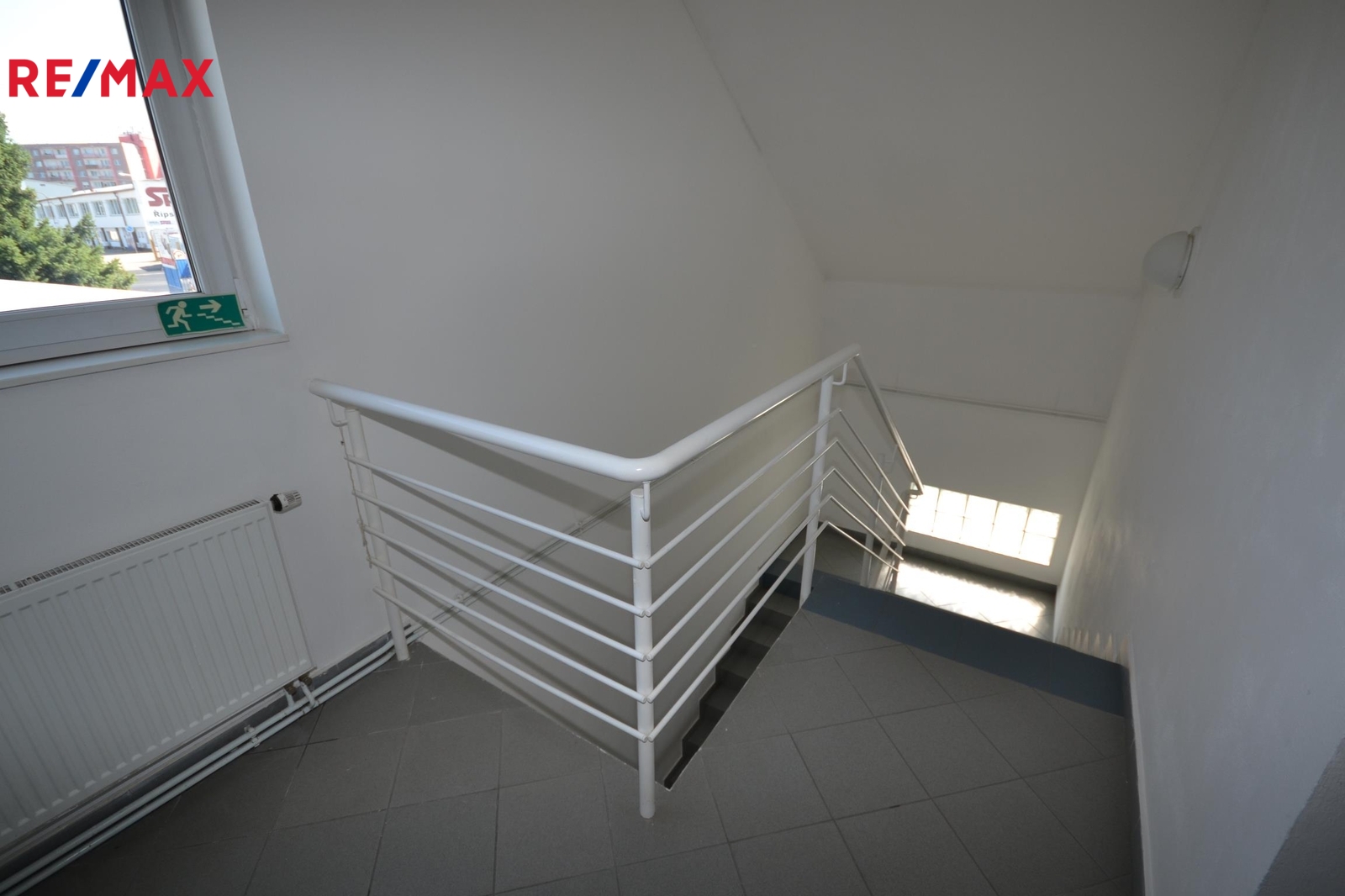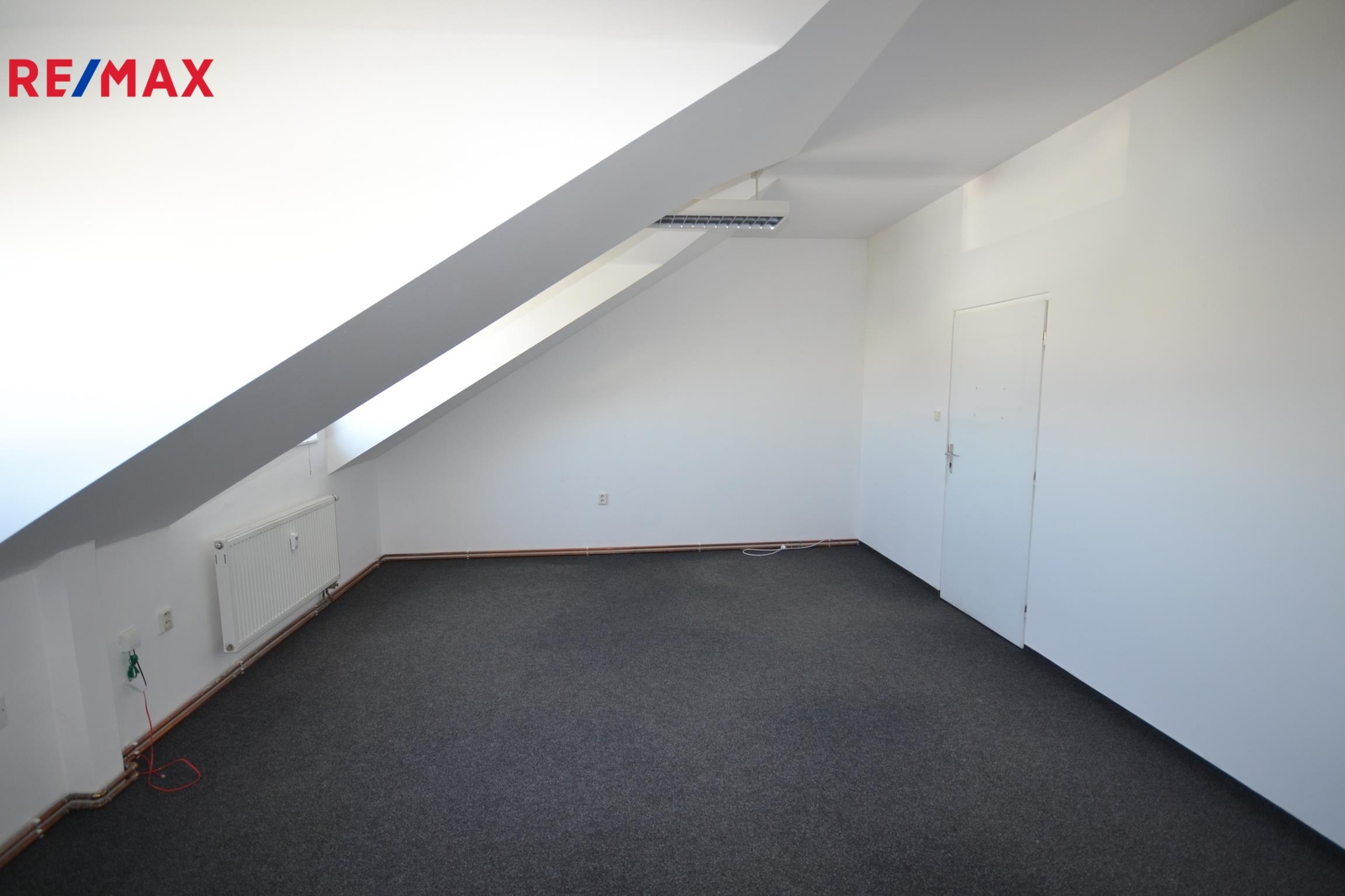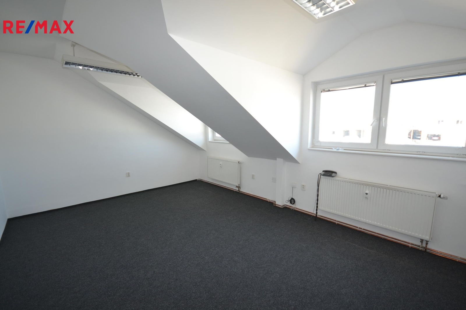Dispozice budovy: 2. NP vstupní chodba, kancelář 26,6 m2, společné WC a umyvadlo. Kancelář je prázdná bez vybavení, podlahy pokryté kobercem, na chodbách a kuchyni dlažba, plastová okna, rozvedena telefonní linka včetně internetu od O2, zabezpečovací systém. Parkování k dispozici v objektu u budovy, jedno osobní auto 18.000 Kč/rok. Služby: elektřina , vodné, stočné a vytápění 1317 Kč/měsíc, odpad 117 Kč/měsíc, ostraha objektu 133 Kč/měsíc. Všechny ceny jsou uvedeny bez DPH. Celý areál je zabezpečen a napojen na centrální pult ostrahy. Atraktivní místo blízko dálnice D1, výborná dostupnost centru města. Volné od 1.12.2025.