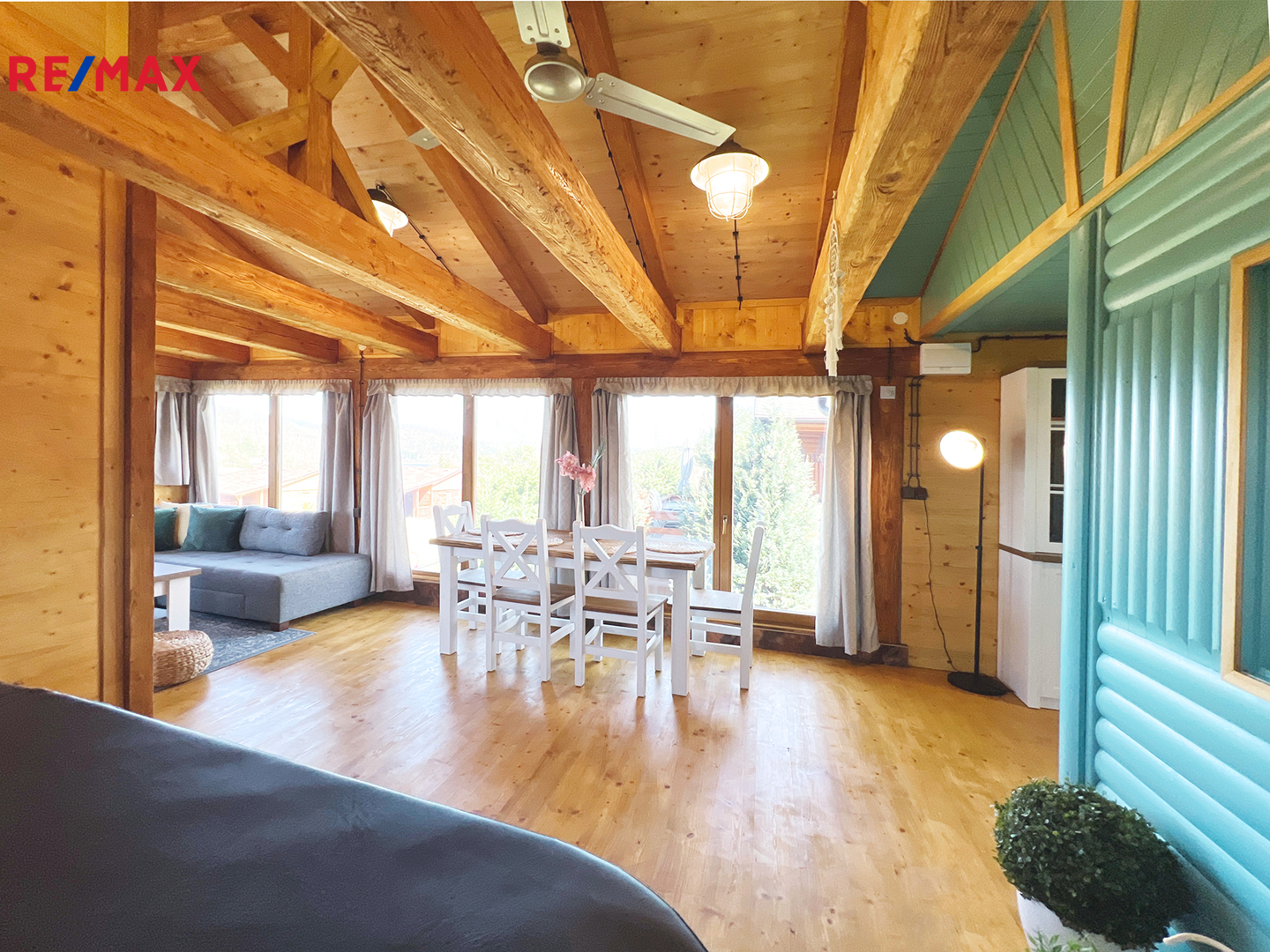 Chata o dispozici 3+kk nabízí velkorysý prostor o celkové ploše 80 m2, najdete zde dostatek místa a komfortu pro celou Vaši rodinu. Pro Váš úplný pocit slasti, se jistě postará úplně nová vířivka, odkud se díky velkoformátovým oknům můžete blaženě dívat do dalekého okolí.