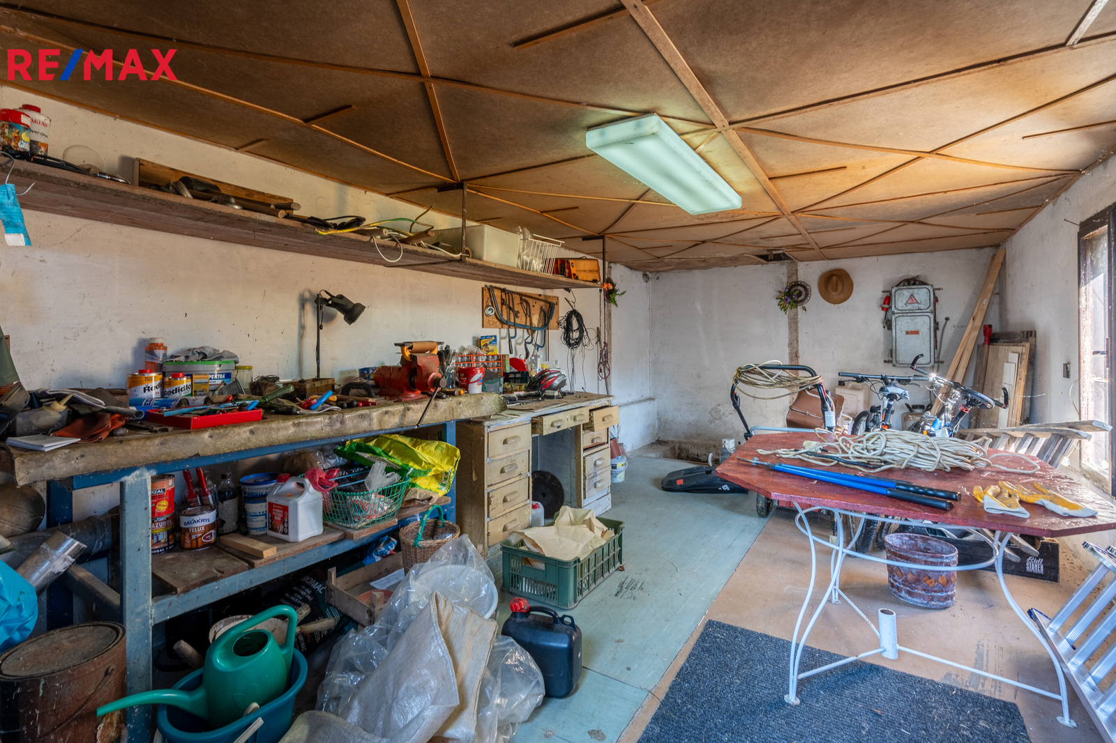 Na zahradě stojí zděná garáž, kolem domu je možnost parkování až pro čtyři automobily. Pozemek je oplocený a nabízí naprosté soukromí, klid a pohodu.