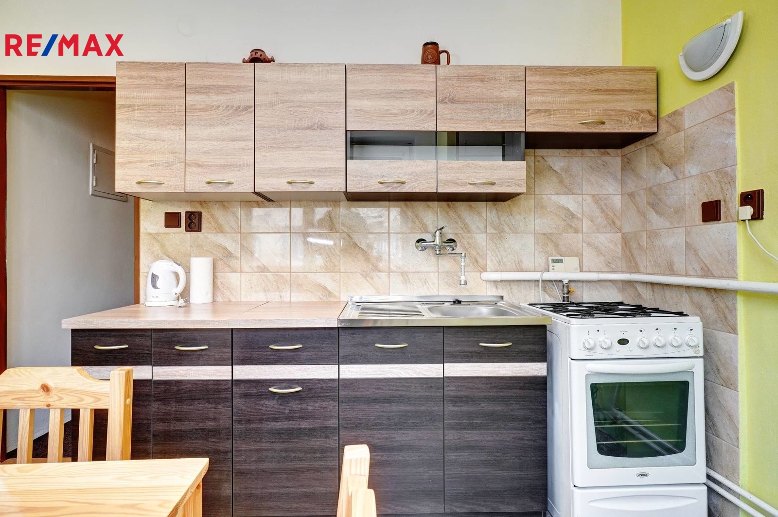 Kuchyně je vybavena kuchyňskou linkou s plynovým sporákem a jídelním stolem. Obývací pokoj je kompletně zařízen – k dispozici je gauč, obývací stěna i konferenční stolek. Ložnice je nezařízená, což umožňuje novému nájemníkovi upravit si prostor dle vlastních představ. K bytu náleží také sklepní kóje o velikosti 0,7 m².
