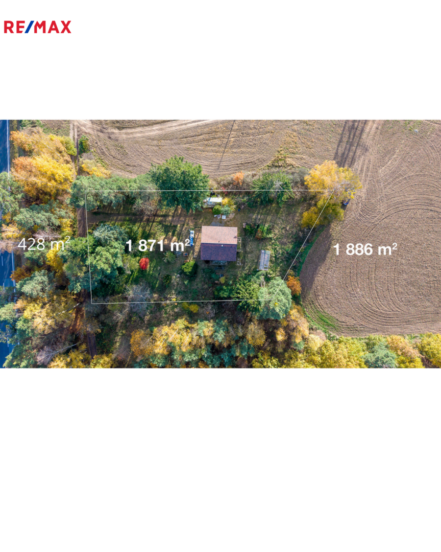 • 428 m² zalesněné plochy, která přirozeně odděluje příjezdovou cestu od silnice.