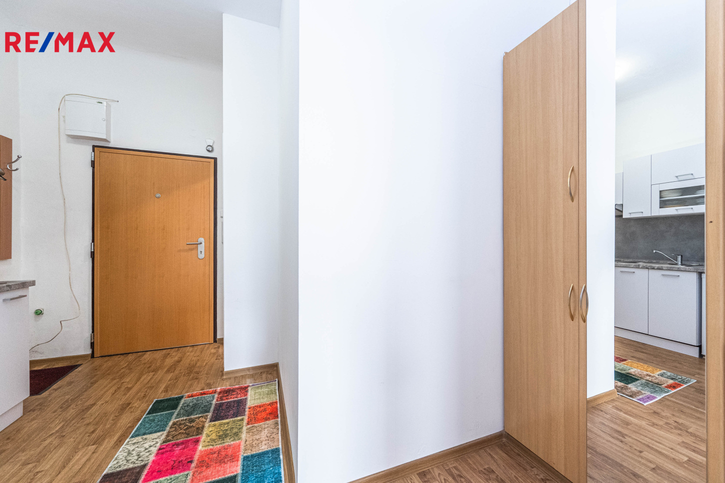 V bytě zůstává veškerý nábytek na fotografiích, a to vybavená kuchyň, stůl se dvěma židlemi, pohovka, konferenční stolek, pračka a matrace. Okna jsou orientována na jižní stranu do ulice Milady Horákové.