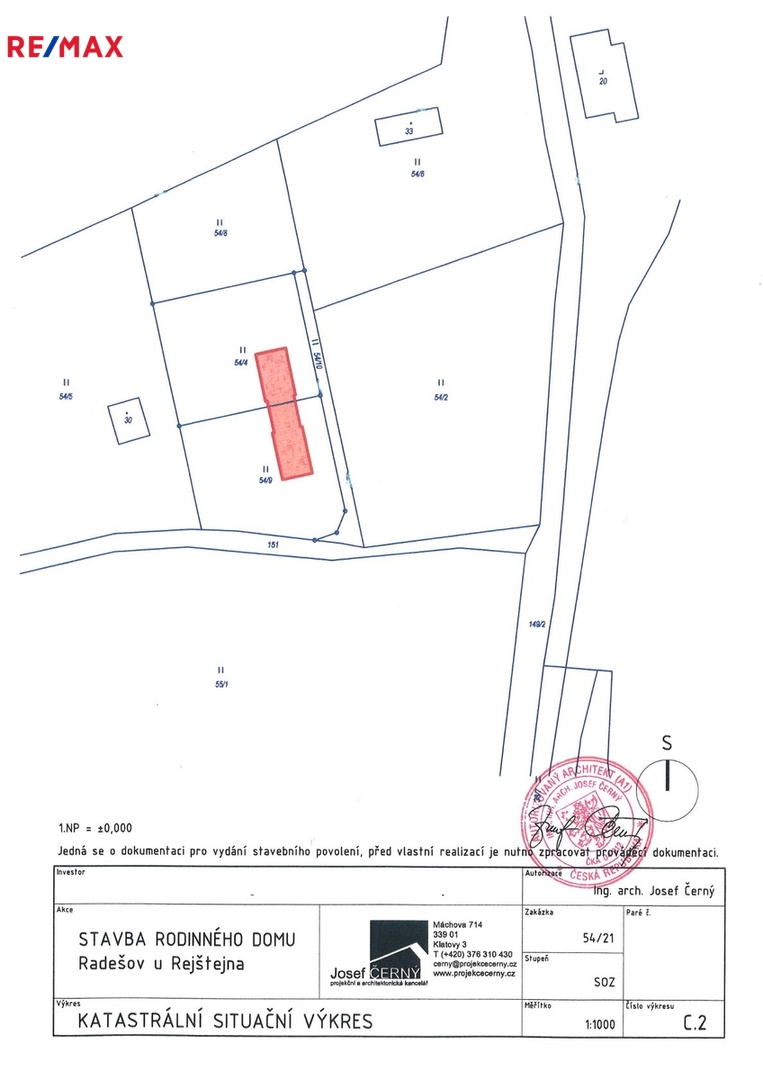 Součástí nabídky je stavební povolení na výstavbu rodinného domu se dvěma bytovými jednotkami a zastavěnou plochou 292,7 m².
