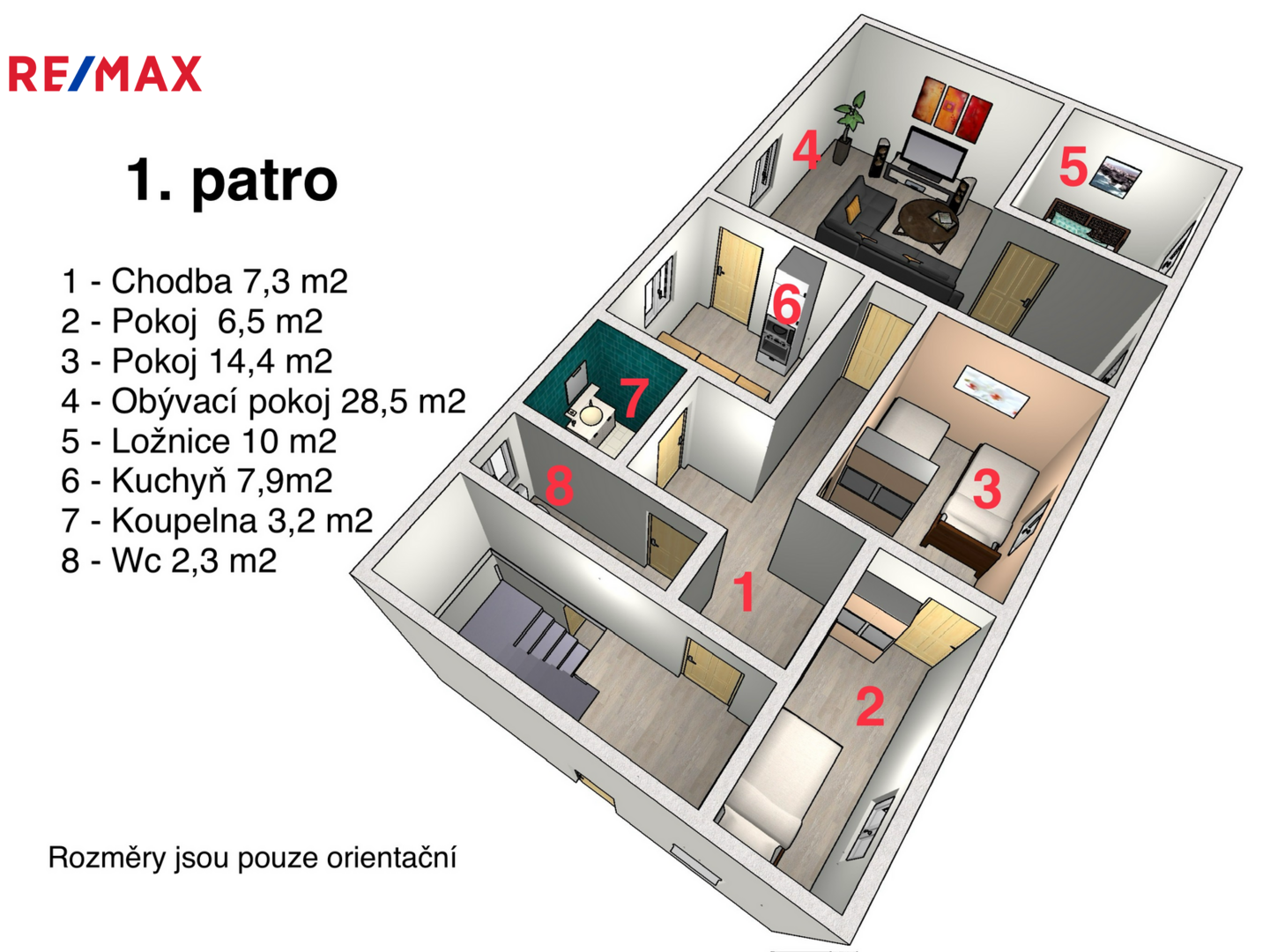 2. NP: 3+1, koupelna, WC, balkon, suchá půda