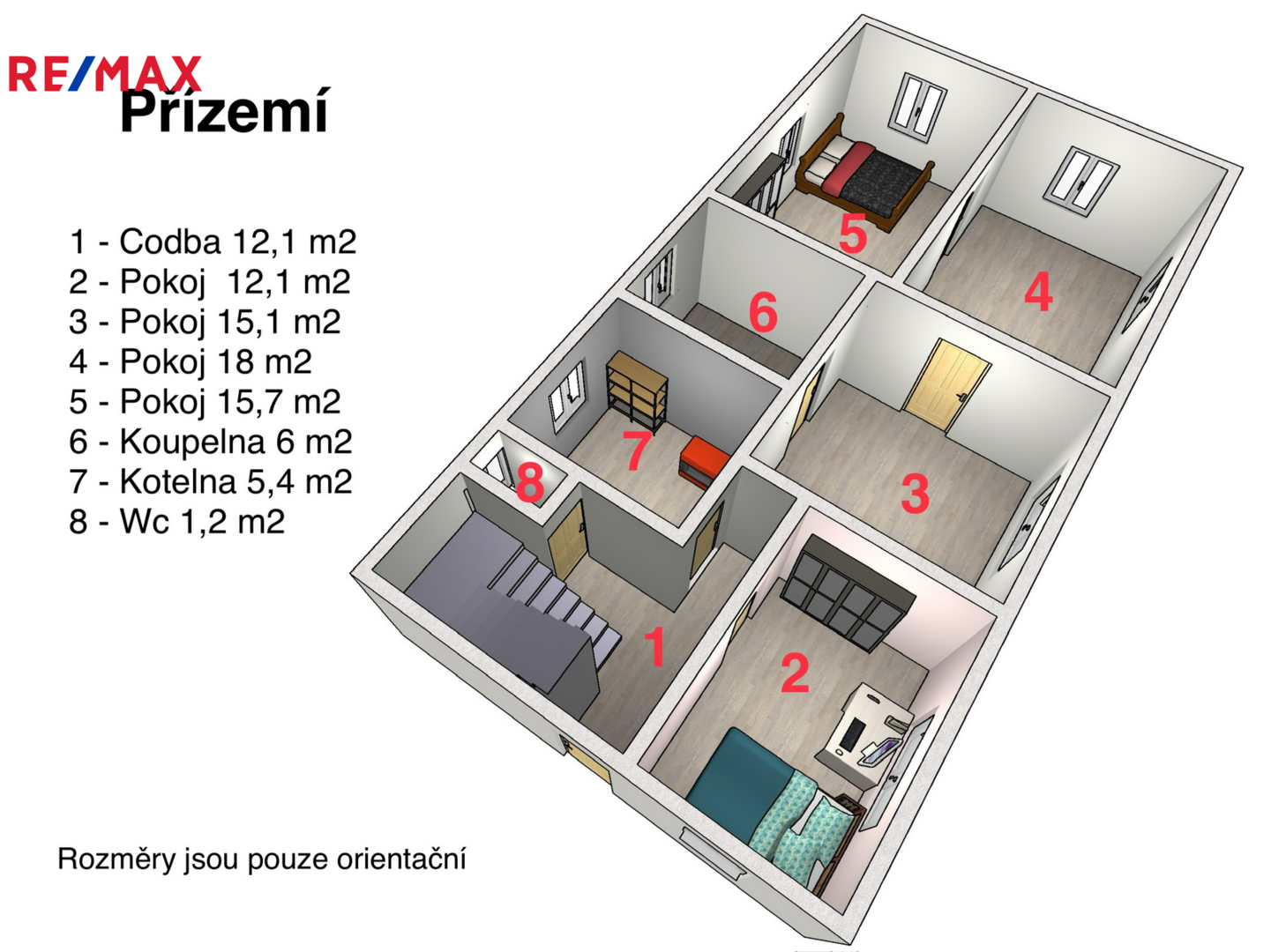 Stav nemovitosti: Dům je funkční, vyžaduje však rekonstrukci.