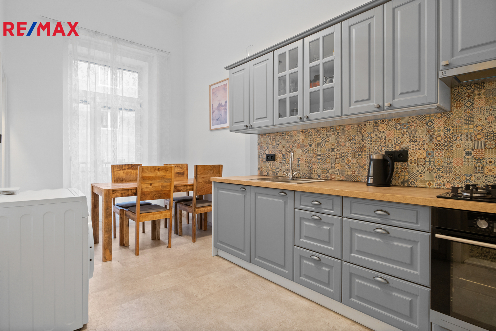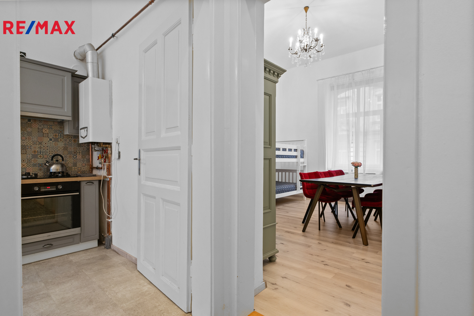 Byt prošel kvalitní nadstandardní rekonstrukcí, která citlivě spojuje moderní prvky s původním charakterem domu. Renovované původní dveře, velká plastová okna a pečlivě sladěné detaily dodávají celému prostoru jedinečný a elegantní charakter.