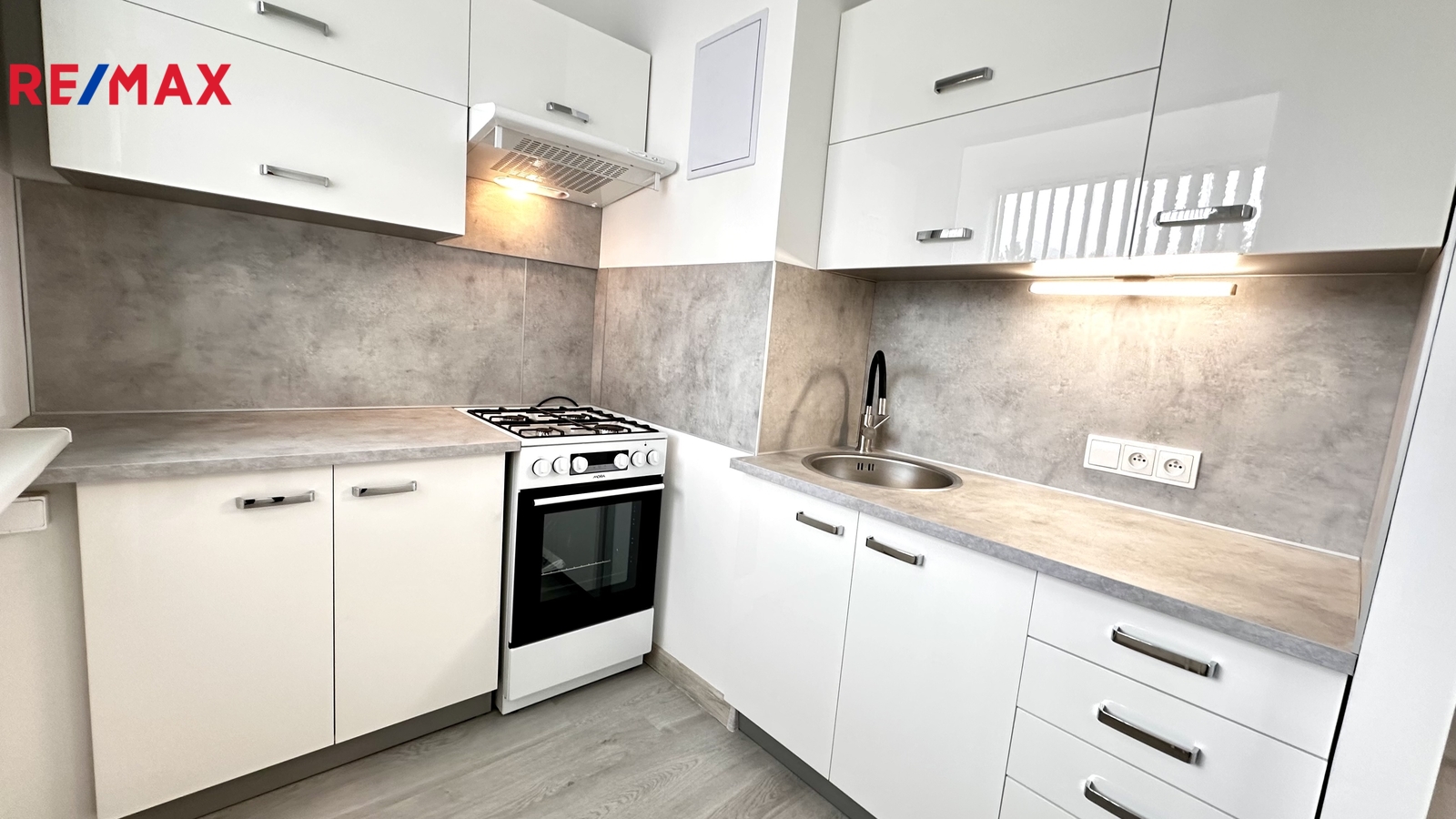 Dispozice bytu nabídne vstupní chodbu, obytný prostor s kuchyňským koutem, koupelnu se sprchovým koutem a toaletou. Součástí vybavení je pračka. Byt prošel kompletní rekonstrukcí – nová kuchyňská linka, podlahy, koupelna i lodžie. K bytu náleží komora u stupu do bytu.