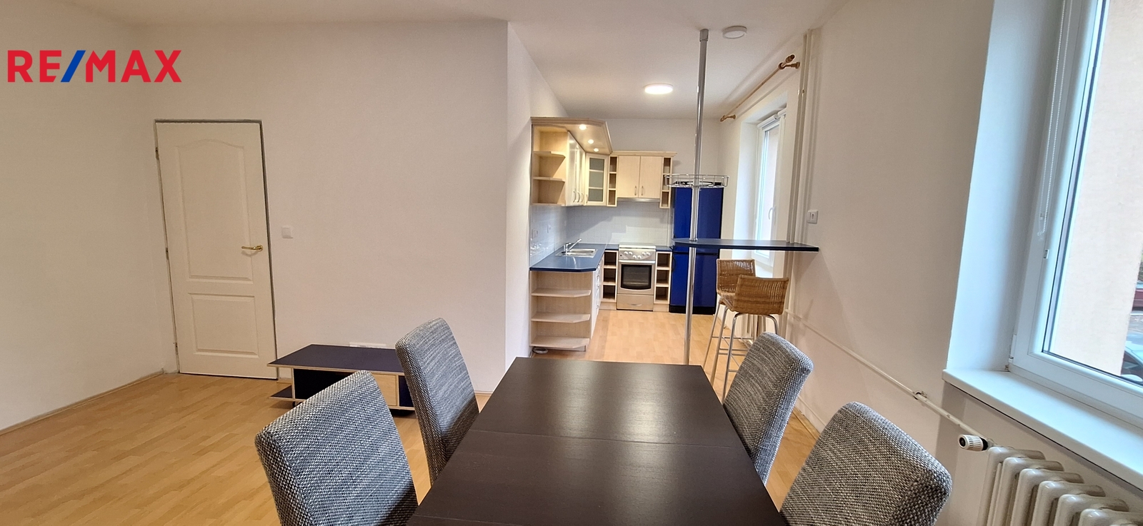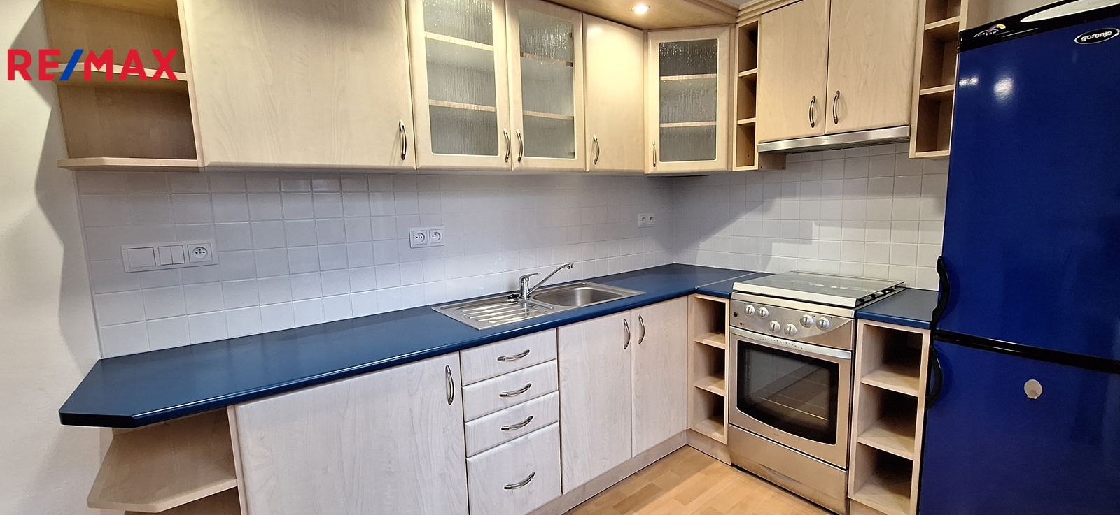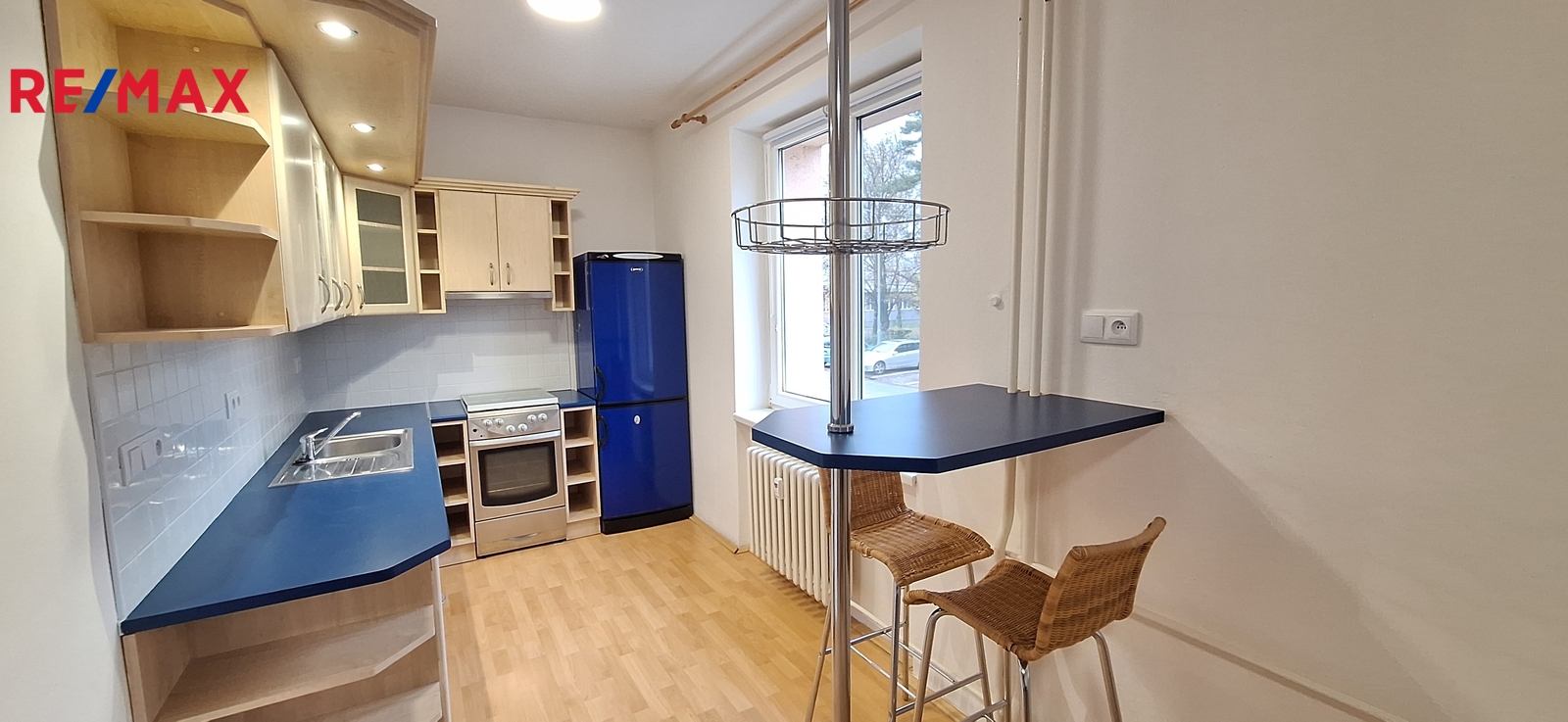 V bytě jsou plastová okna s roletami, podlahy plovoucí, dlažba a koberec, kuchyňská linka se spotřebiči (plynový sporák, el. trouba, lednice s mrazákem), koupelna s rohovou vanou, pokoj se skříní. Dům je po revitalizaci, parkování možné u domu.
