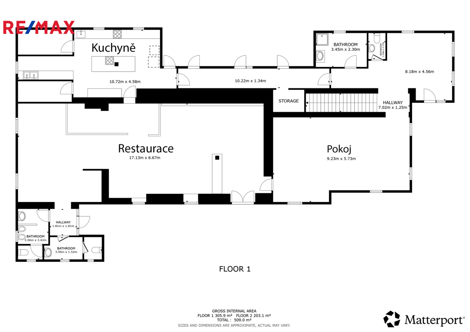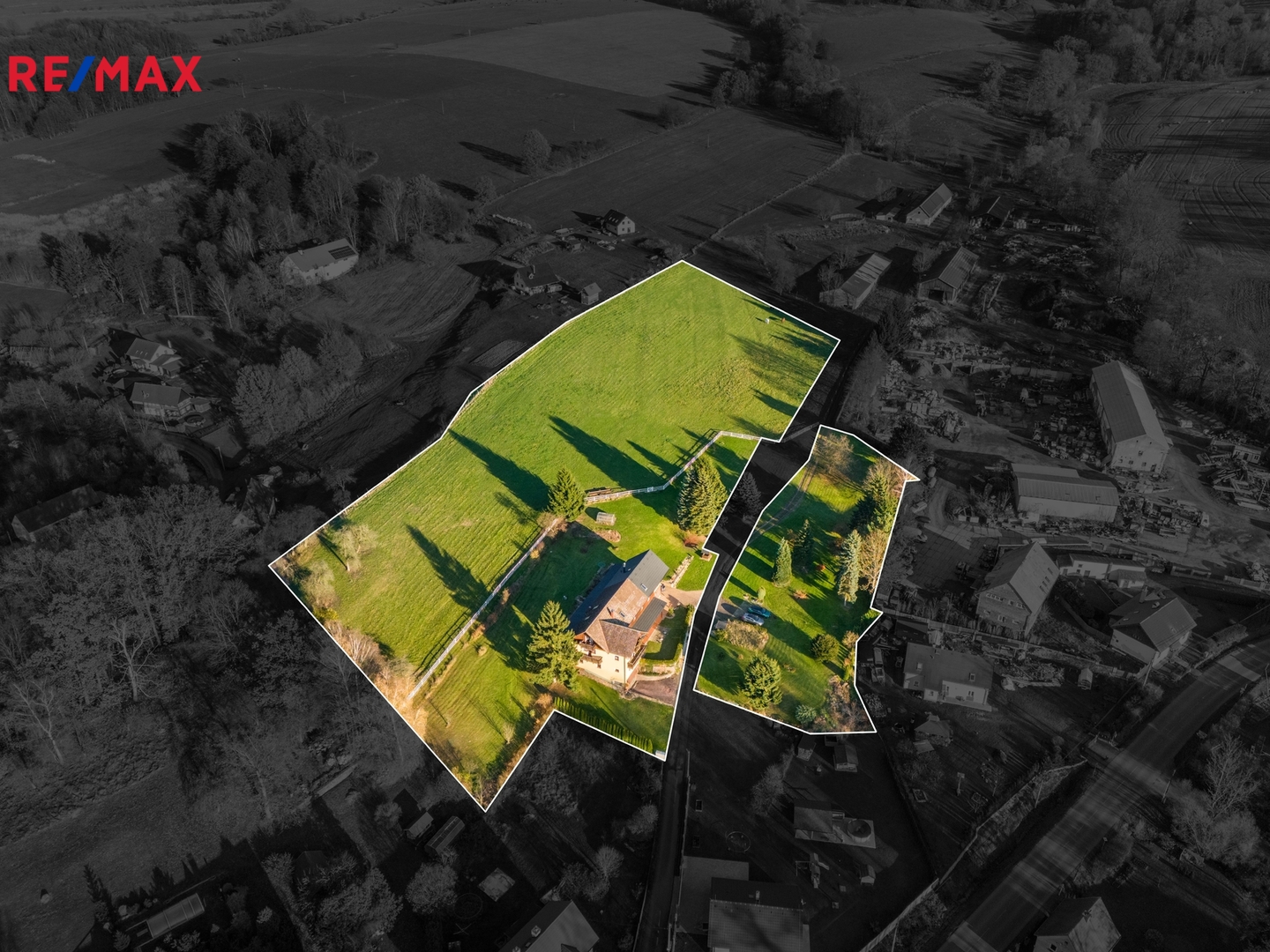 Zastavěná plocha nemovitosti činí 696 m² a celková rozloha pozemku dosahuje impozantních 16 812 m², což poskytuje nejen naprosté soukromí, ale i obrovský prostor pro další rozvoj. Tyto pozemky jsou z větší části pro výstavbu rodinných domů. Samotný dům má dvě nadzemní podlaží a podkroví, která dohromady tvoří promyšlený celek umožňující víceúčelové využití.