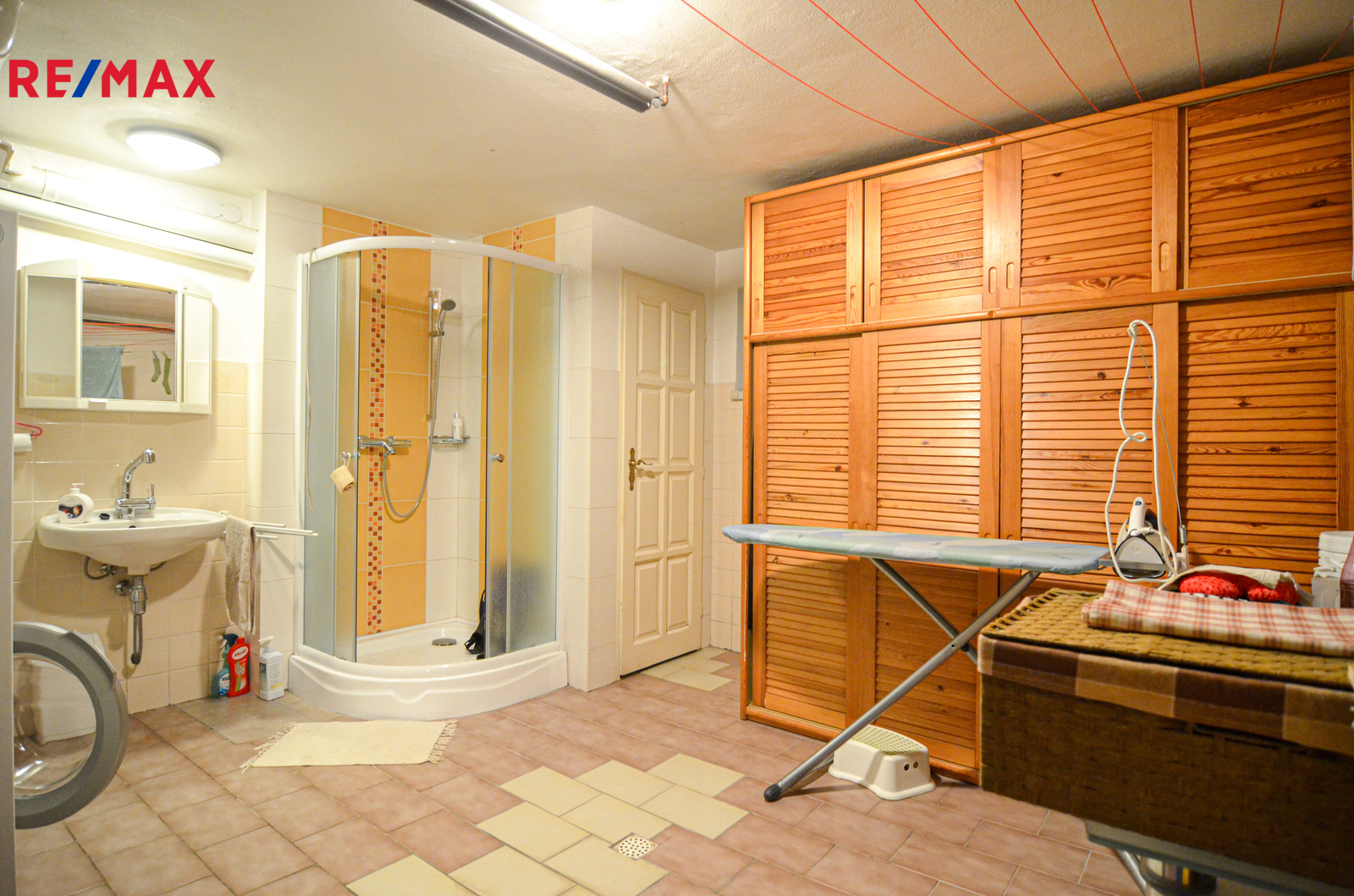Suterén: kotelna s prádelnou a sprchovým koutem, samostatné WC, velký pokoj – ideální pro hosty, hobby či domácí fitness, 2 sklepy se vstupem na zahradu.