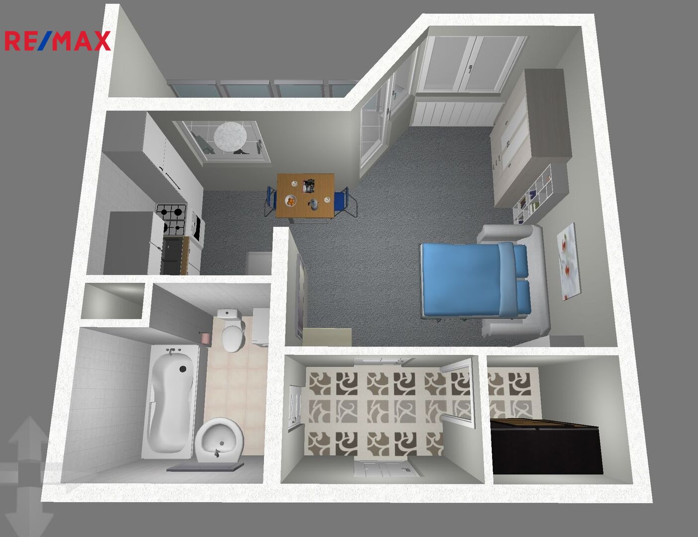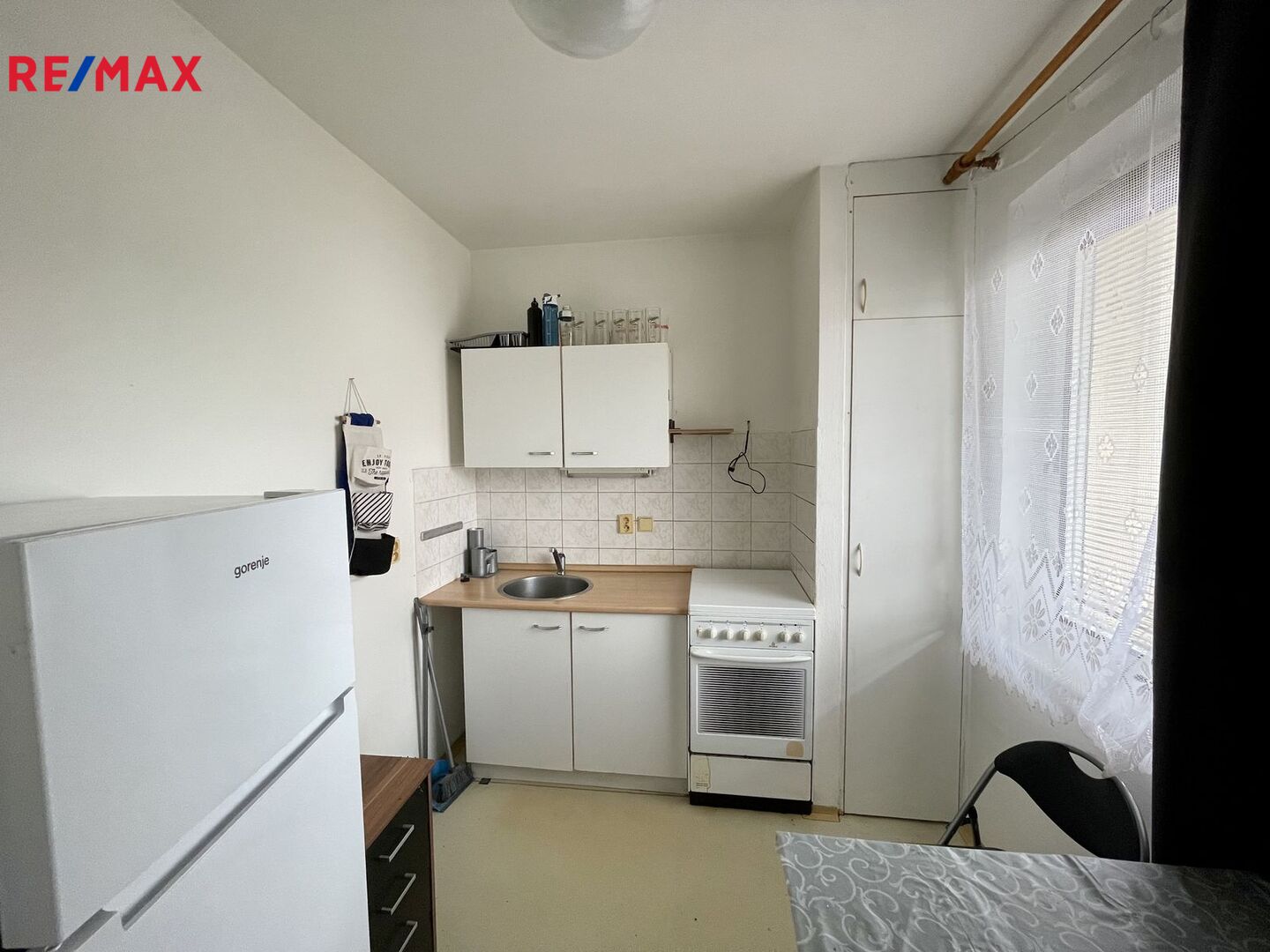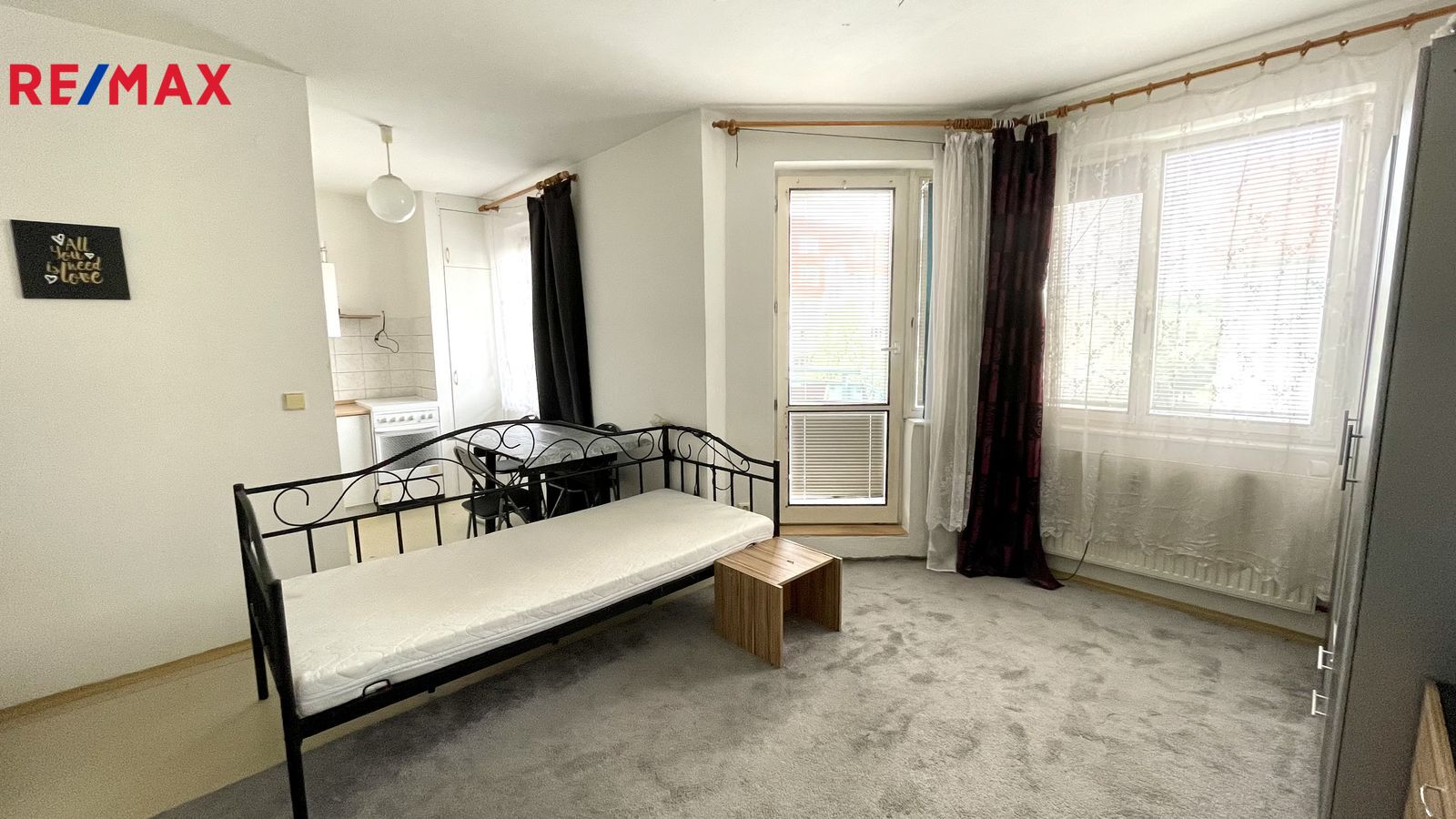 Pěkný, čistě vymalovaný byt se nachází ve 4.np v domě o 6 np. Kromě prostorného pokoje, který je propojen s kuchyní, je v bytě větší chodba s prostorem pro šatnu a koupelna s wc. Z pokoje se vchází na rozměrnou lodžii. Ve stejném podlaží se nachází i místnost o výměře 5m2, která slouží jako sklep.