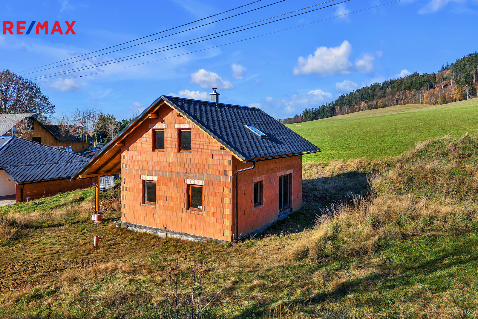 Všechna instalovaná okna jsou plastová s izolačním trojsklem. Dokončeny jsou také klempířské prvky včetně odtokových žlabů, svodů a oplechování komínu. Dokončeno je též betonové schodiště do 2.NP.